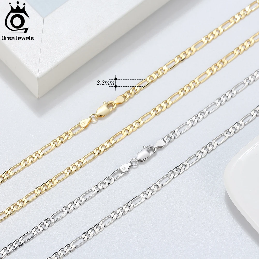 ORSA JEWELS ручная работа, Италия, 7 мм, ширина, бриллиантовая цепочка Figaro, ожерелье, 18 К, золото, серебро, мужская и женская цепочка на шею, SC34