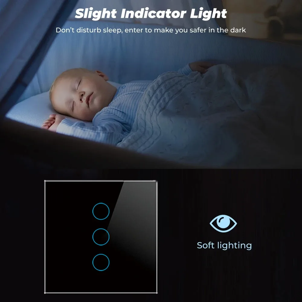 Умный сенсорный выключатель 123 кнопочный настенный с поддержкой Wi-Fi, 110-250 В