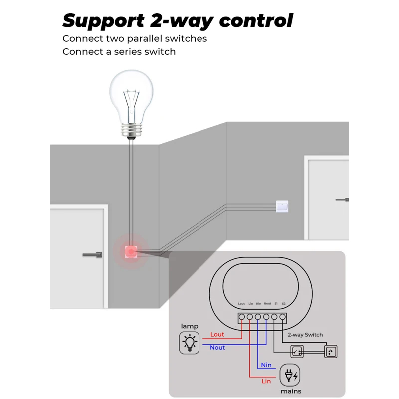 Его также можно подключить за переключателем для поддержки одного переключателя управления и двойного переключателя управления. Он может быть непосредственно установлен в коробке переключателя, чтобы скрыть модуль переключателя. Он также может быть установлен на двойном переключателе управления, не влияя на использование двойного переключателя управления.