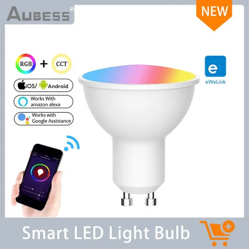 Умная светодиодсветильник лампочка Aubess Gu10 с Wi-Fi, 220-240 В, приложение EWeLink, 4 Вт, RGB + CCT, голосовое управление, работает с Alexa Google Home