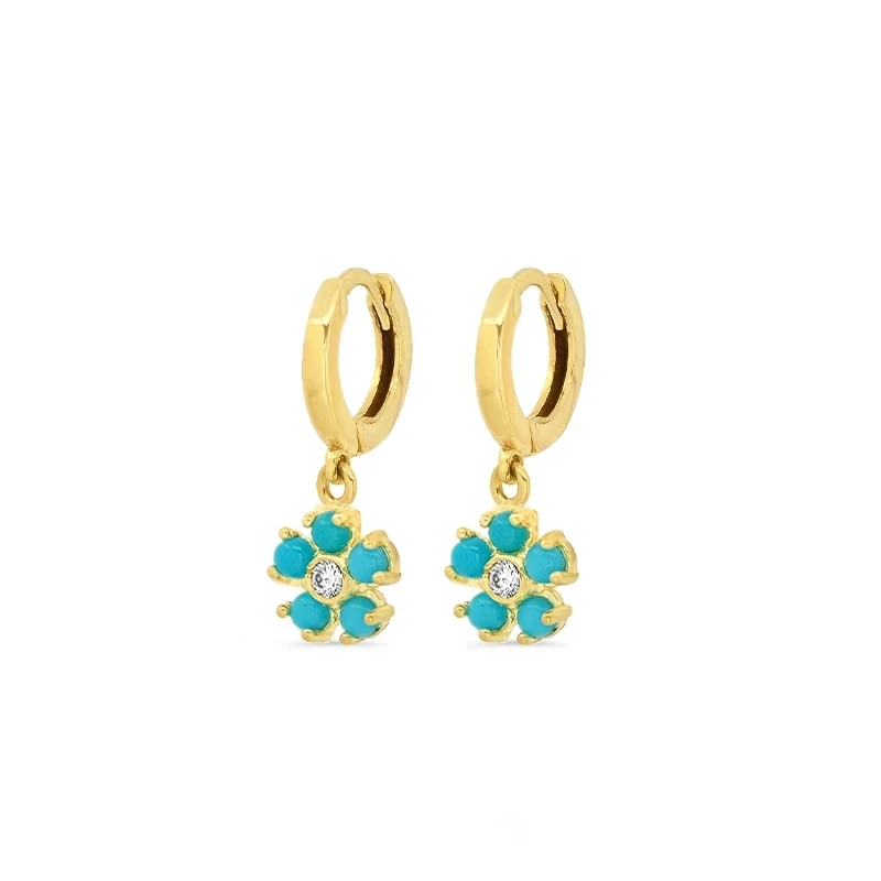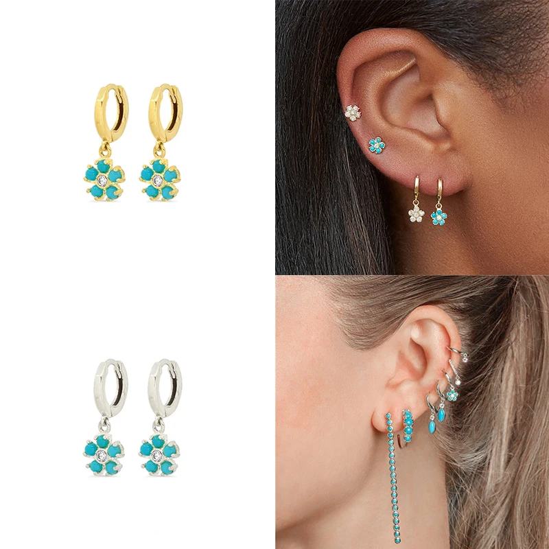 Женские серьги-подвески Huggie из серебра 925 пробы с бирюзовым кул...