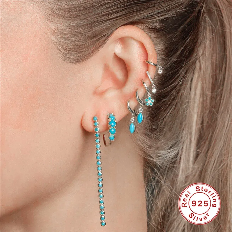 BOAKO 100% Настоящее серебро 925 серьги 2021 тренд серьги для женщин Снежная бирюза Висячие серьги ювелирные изделия Pendientes Mujer Aretes