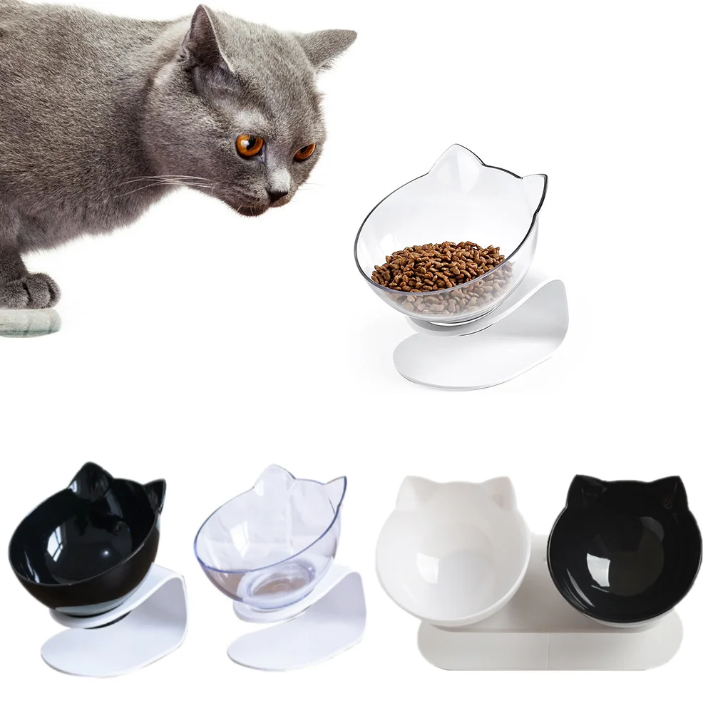 Двойная миска для кошек приподнятая миска для кошек Нескользящая кормушка для кошек с подставкой Защитная Шейная миска для кормления собак котят товары для питомцев