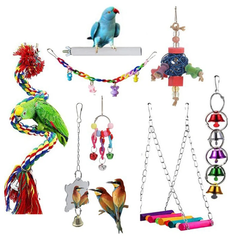 8 шт. Игрушки для птиц подвесные жевательные качели колокольчик птица красочные деревянные игрушки гамак лестница для лазания игровые принадлежности для обучения попугаев