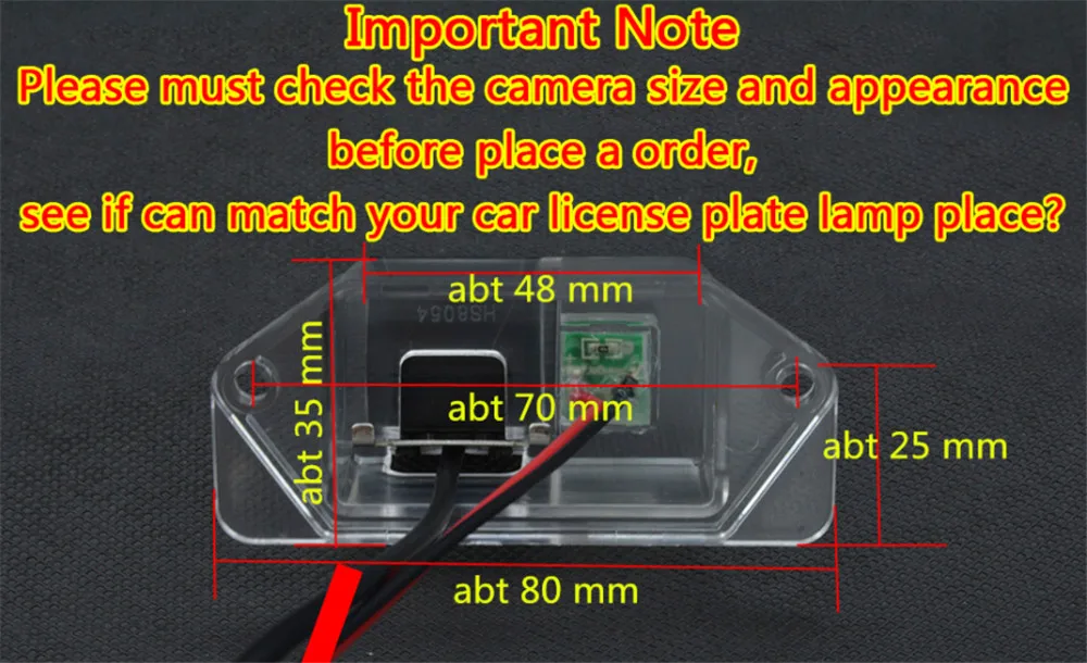 Уважаемый клиент! Пожалуйста, проверьте размер фотографии камеры, посмотрите, может ли он поместиться в ваш автомобиль номерной знак лампы!
