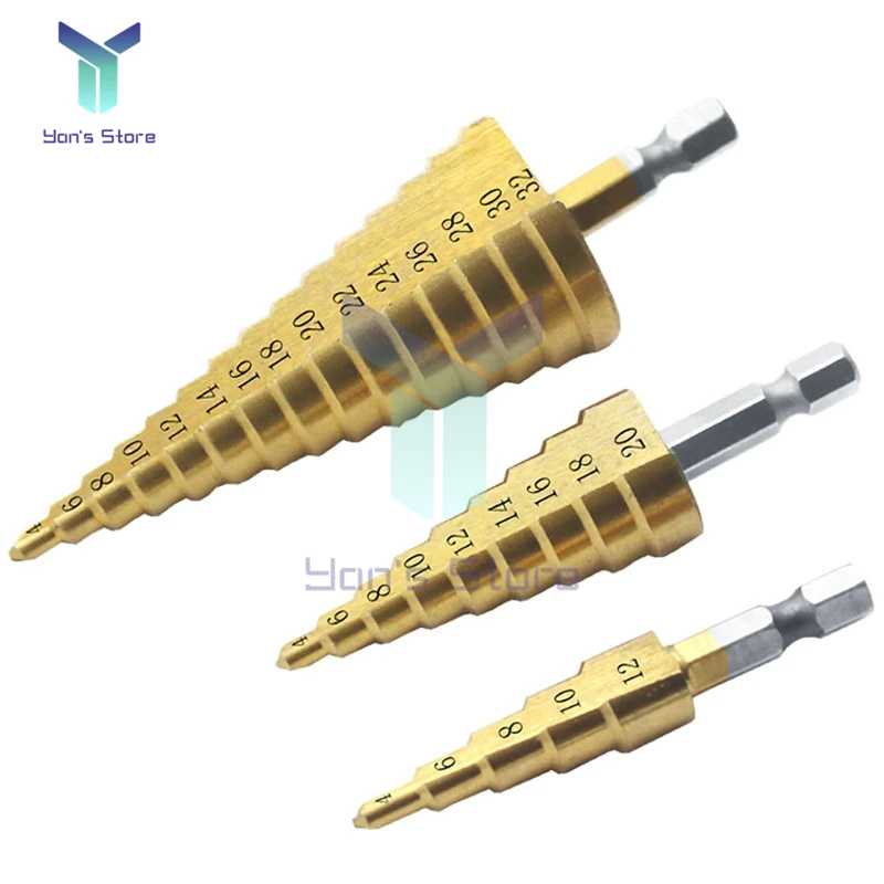 Набор ступенчатых Сверл из быстрорежущей стали с шестигранным хвостовиком, 4-12 мм, 4-20 мм, 4-32 мм, 3 шт.