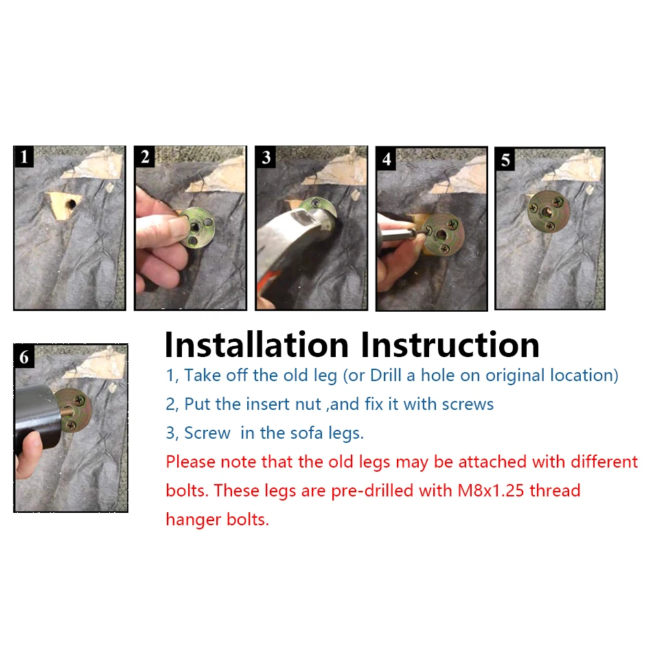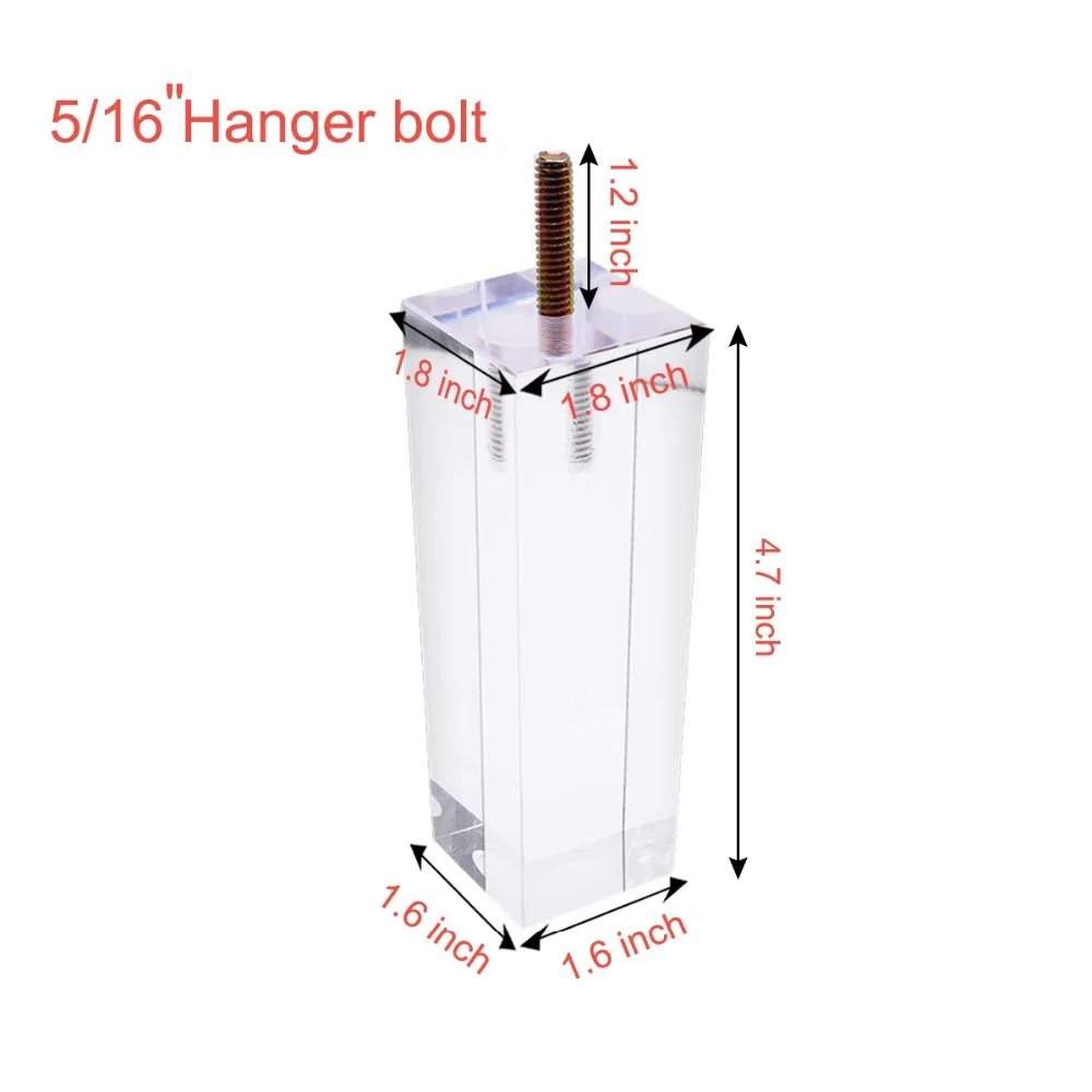 Акриловые ножки для мебели прилагаются к американским стандартным 5/16 дюймовым болтам-вешалкам, которые подходят для большинства американских мебели.