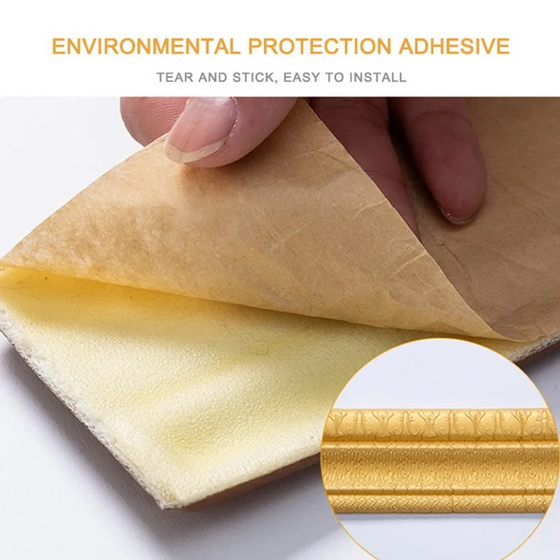 Особенности:** Материал хорошего качества: Эта пенопластовая отделка изготовлена из высококачественного ПВХ материала, коррозионно-стойкого, водонепроницаемого, влагостойкого, без запаха и нетоксичного.** Практичный в использовании: водонепроницаемый, анти-сжатие и анти-столкновение, простой в использовании с клеем, легко украсить стену, ремонт стен и многое другое.** Защита от столкновений: изготовлено из гибкой формовочной формы, изготовлено из пеноматериала, мягкое, противоскользящее, безопасное для ребенка, семьи.** Самоклеящаяся: Экологически чистая клейкая Задняя лента, легкая установка, очистка и прилипание, никаких других инструментов не требуется, сильный клей не позволяет легко упасть.** Применимые поверхности: могут прилипать практически к любой гладкой поверхности, такой как плитка, пластик, мрамор, металл, стекло, дерево, гладкая стена и многое другое. Не подходит для использования на грязных или грубых поверхностях.** Широкое применение: Идеально подходит для ванной комнаты, спальни, гостиной, кухни, ТВ фоновой стены, формовки, плинтуса, потолка, границы, шкафа и многое другое. Также можно использовать в качестве защитных наклеек на каждый уголок.** Широко используется: декоративные формовочные Планки для краев, углов и стен. Можно использовать для украшения дома своими руками** Легко моется: водонепроницаемый, влагостойкий и маслостойкий, легко чистится влажным полотенцем** Простота в использовании: Измерьте и отрежьте нужную длину и размер, снимите клейкую подложку и приклейте к гладкой поверхности.