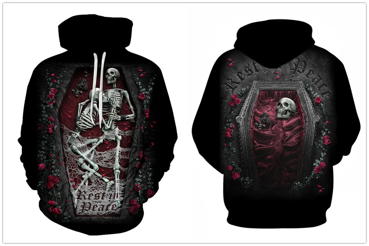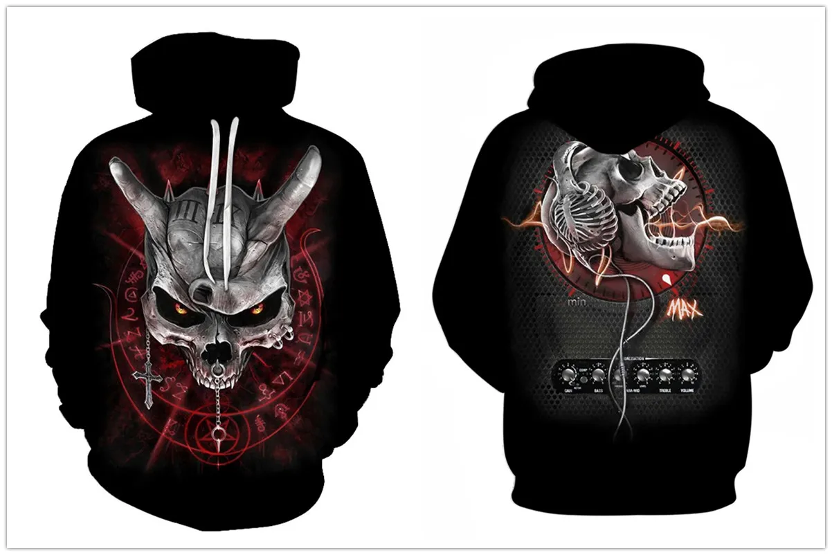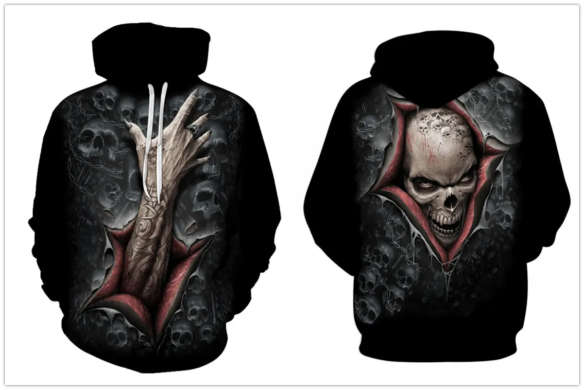 Толстовка с 3D-принтом черепа для мужчин и женщин, модная повседнев...