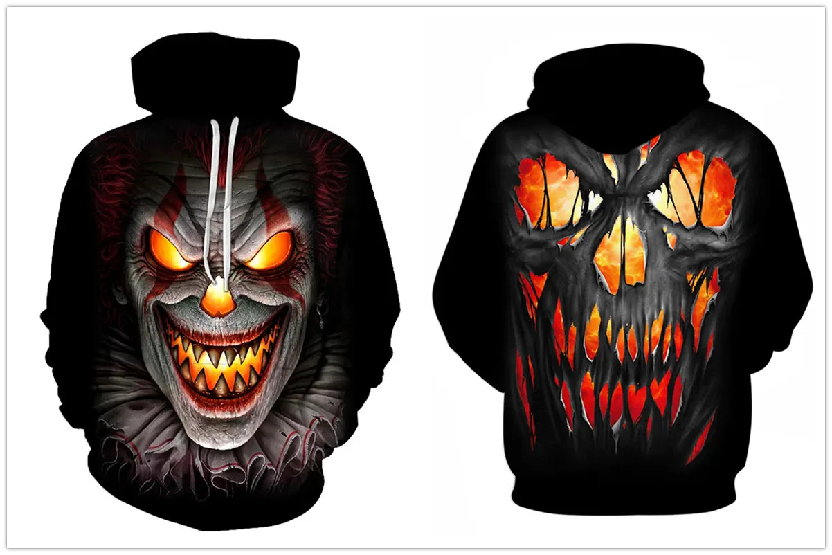 Осень 2021, мужские толстовки с 3D ужасным узором, модная Толстовка...