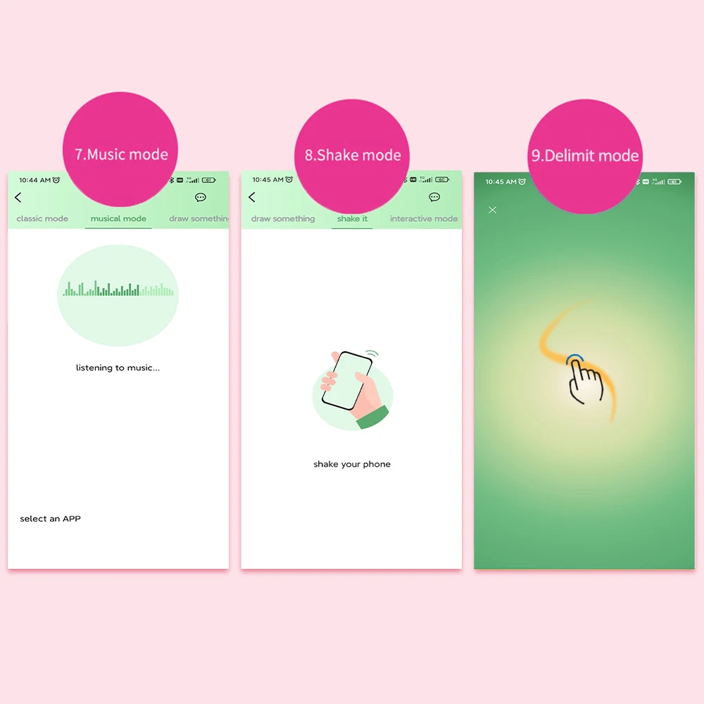 Управление смарт-приложением: устройство подключается к приложению через Bluetooth и совместимо с iOS и Android. Приложение имеет несколько режимов для воспроизведения. В том числе Классический режим, режим музыки, режим делимита, режим встряхивания и интерактивный режим, вы можете настроить свое удовольствие в приложении. Кроме того, его можно контролировать с помощью кнопки питания.