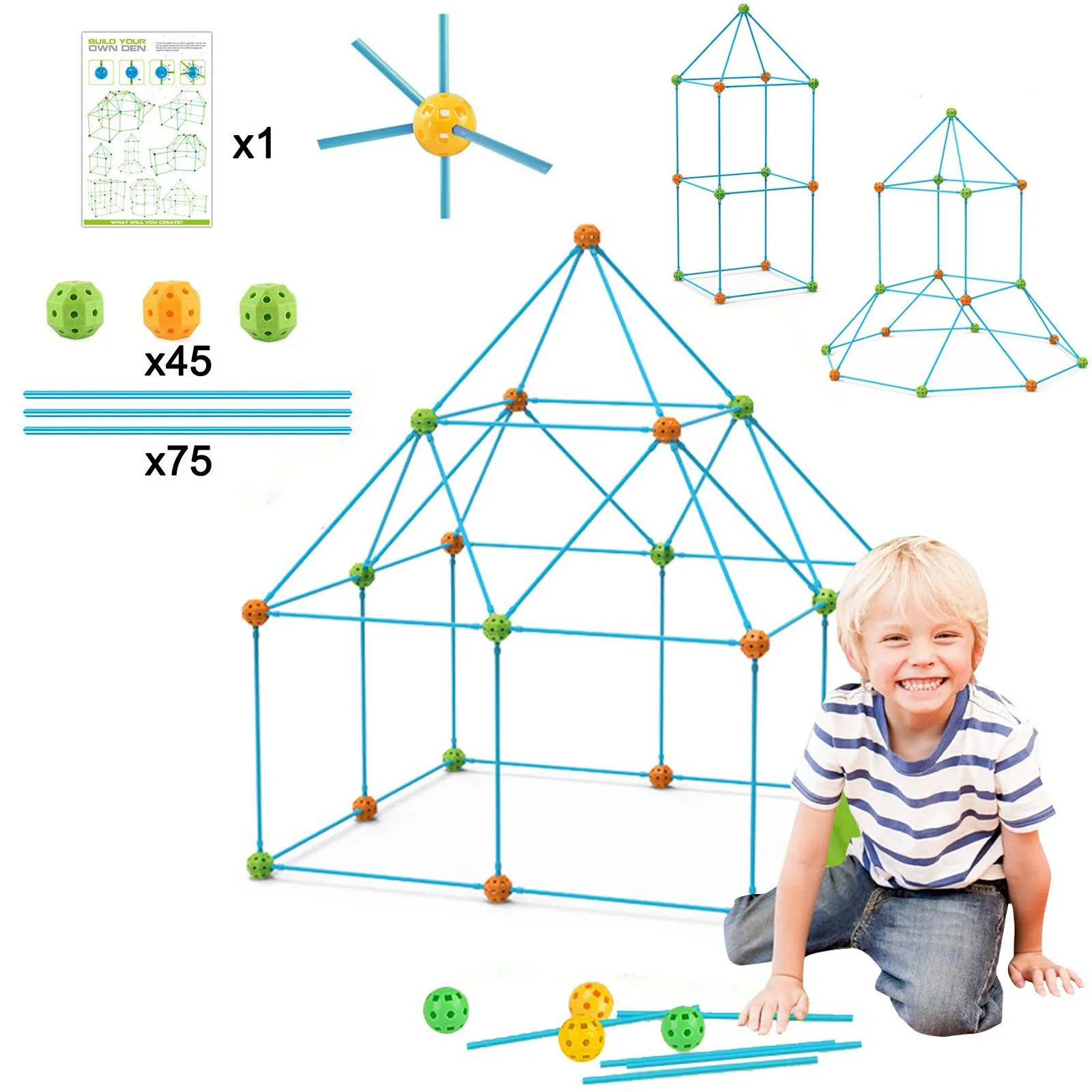 Здание фортаКомплект: включает в себя 45 палатка поддержка (12,2 "долго), 21 синий фиксированный изделия в виде шариков (1,38" диаметр),1 ×Tent ткань. Наши «сделай сам»Наборы палаток позволяют вашему ребенку создавать форты всех форм и размеров (в комплект входит тентовая ткань)!