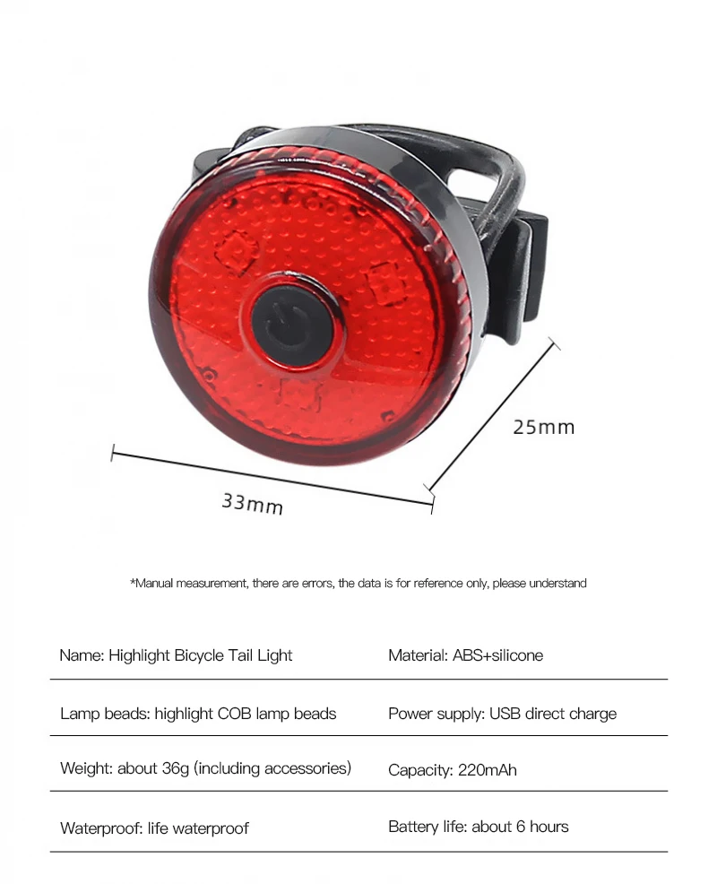 Миниатюрный задний фонарь для велосипеда, велосипедный ночной фонарь, задний фонарь, водонепроницаемая сигнальная лампа безопасности, велосипедные аксессуары