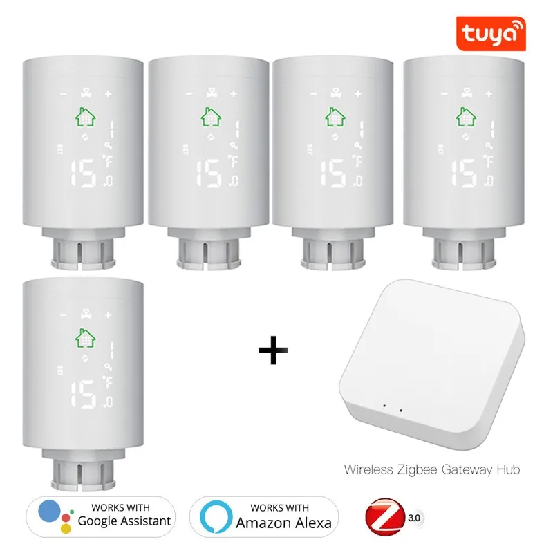 Умный привод радиатора Tuya ZigBee3.0, программируемый термостатический клапан радиатора, регулятор температуры, голосовое управление через Alexa
