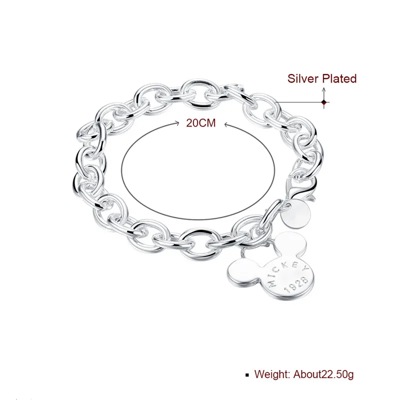 Disney аниме Микки Маус посеребренный браслет с головой Микки модный 925 покрытый серебром очаровательный ювелирный браслет подарки на день рождения