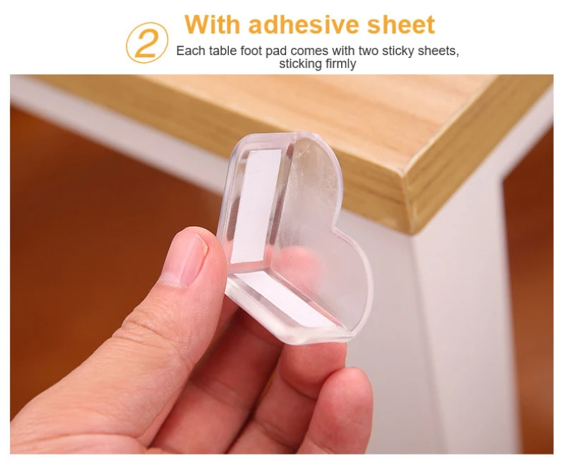 Этот продукт представляет собой коврик для предотвращения столкновений с защитным чехлом для углов любимого стола. Он имеет творческую форму любви и не влияет на красоту дома. Использование мягкого ПВХ материала может эффективно предотвратить повреждение углов стола из-за воздействия и в то же время предотвратить повреждение детей. Клейкие листы крепятся внутри, и два клейких листа крепятся к каждой стопе, которая прочно крепится. Он имеет широкий спектр применений и подходит для мест с острыми углами, такими как столы, счетчики и лестницы в доме. И утолщенный дизайн износостойкий и прочный, что делает его более прочным. Подходит для семьи с детьми и больше мебели. Он может эффективно обеспечить безопасность детей и избежать несчастных случаев.