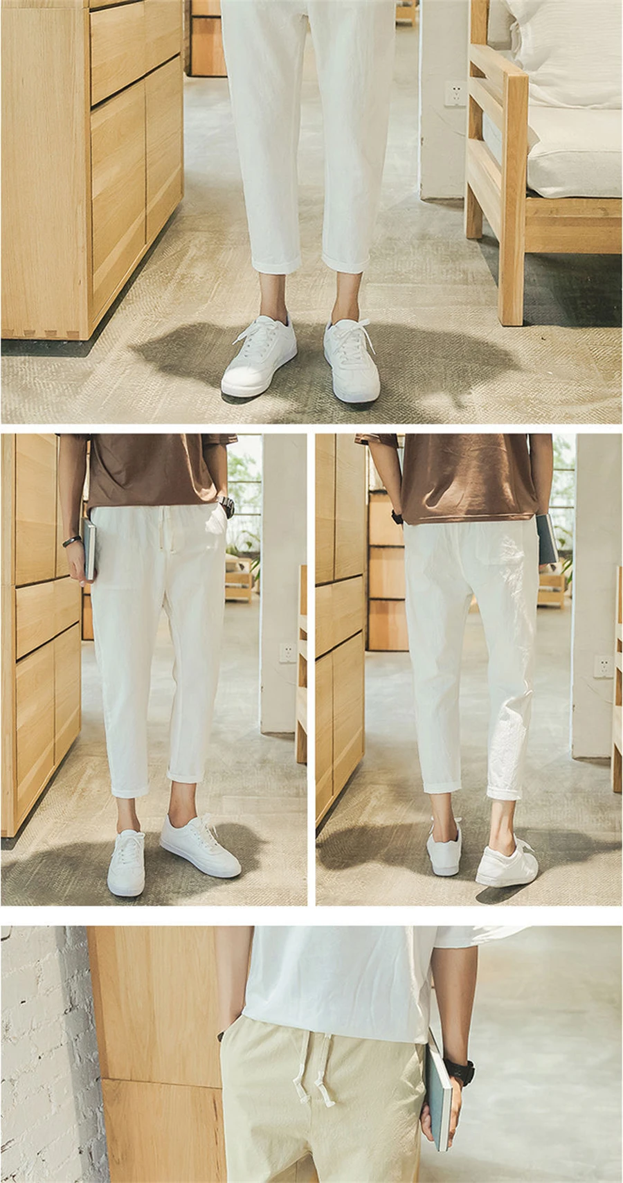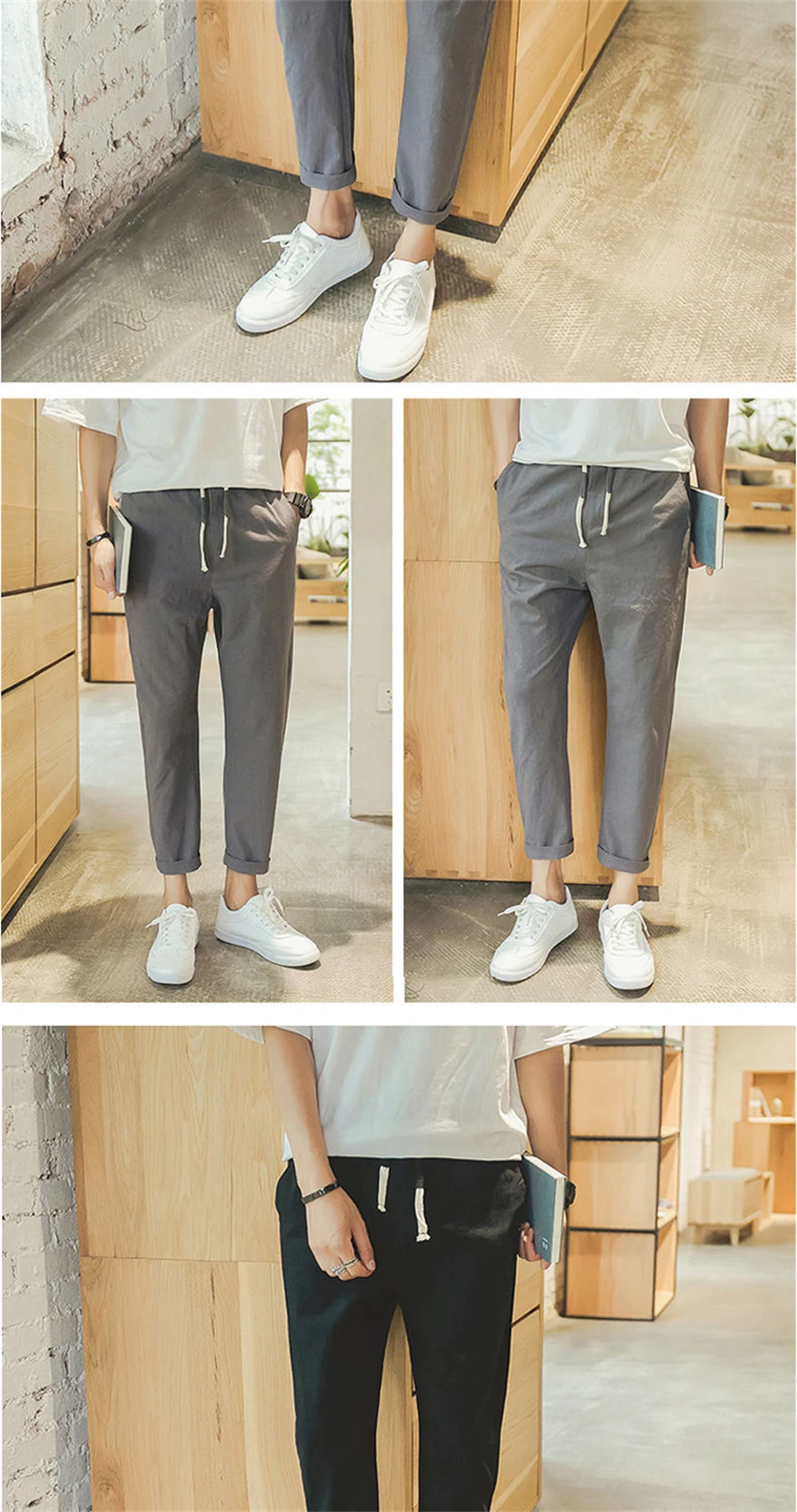 Брюки FOJAGANTO мужские в Корейском стиле, льняные облегающие повседневные штаны до щиколотки светильник тонкие однотонные, на лето