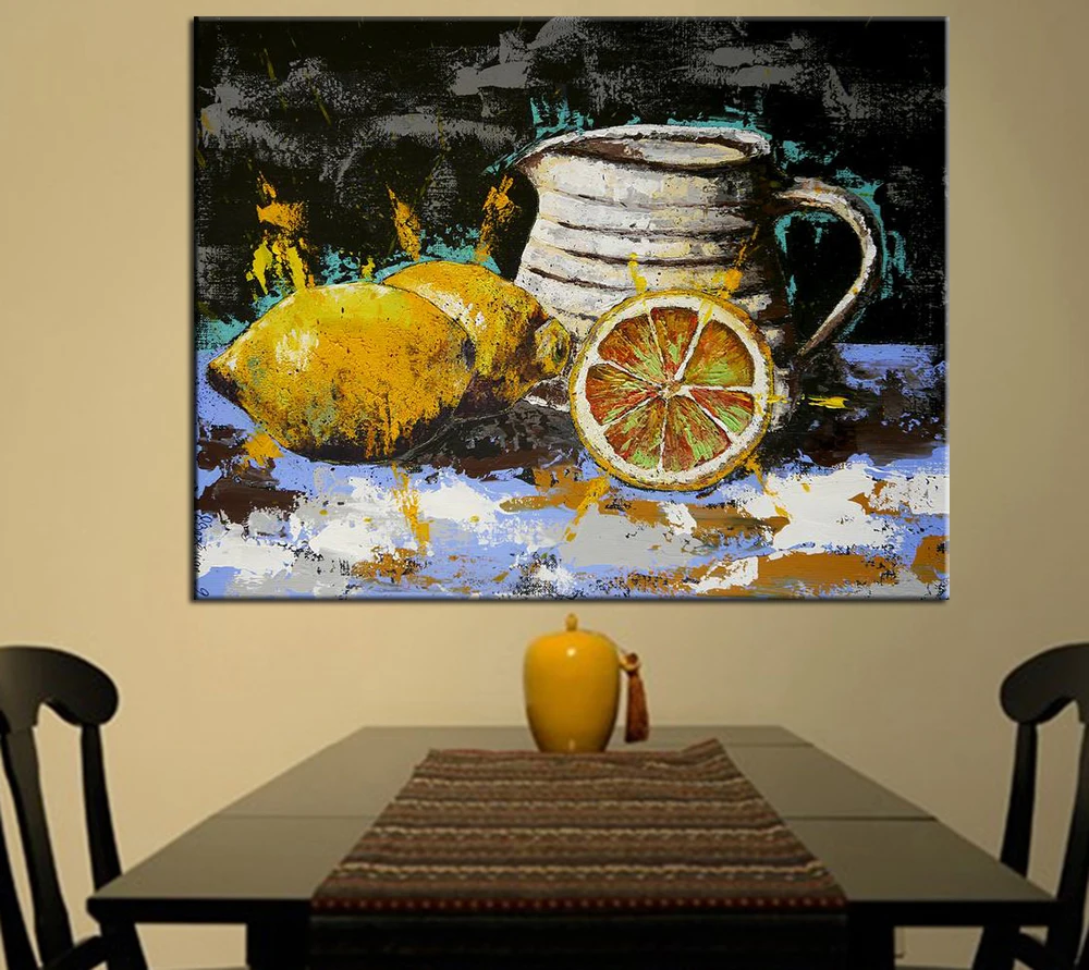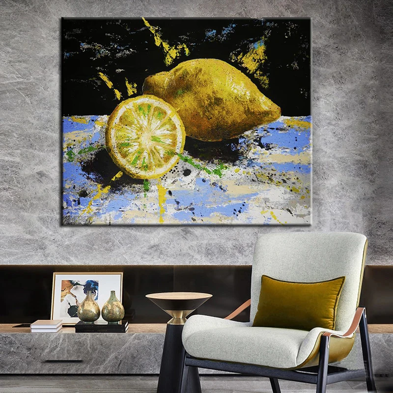Картина маслом на холсте с изображением лимона и яблока