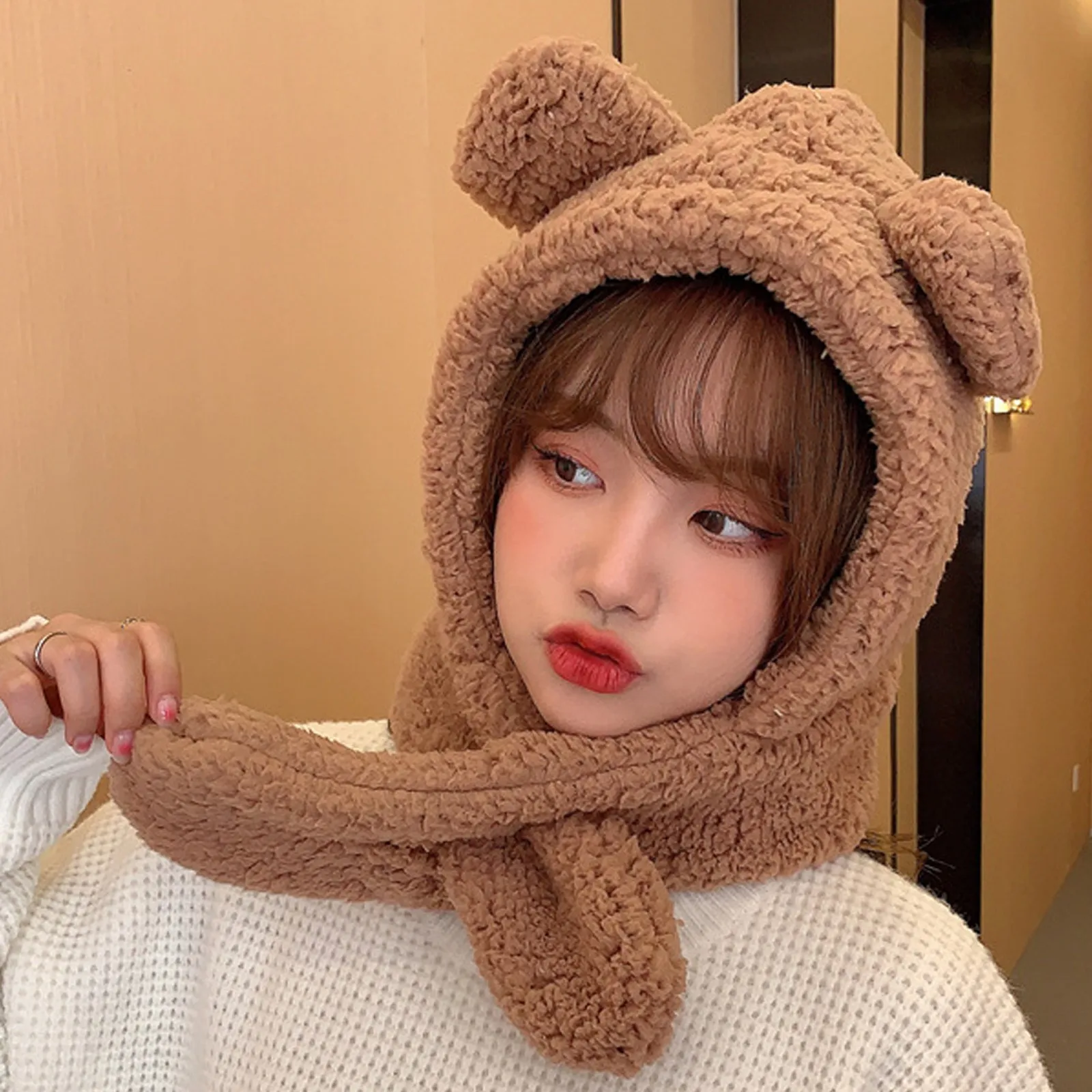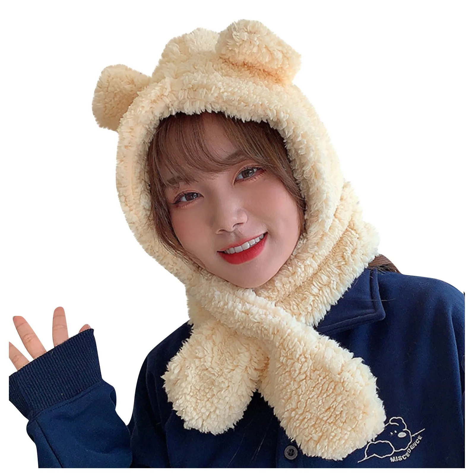 2 в 1, шарф, шапка, модная, для девочек, scarfWomen, милый мультфильм, толстая шапка, защита, теплая, плюшевая шляпа, головной убор, зимняя шапка