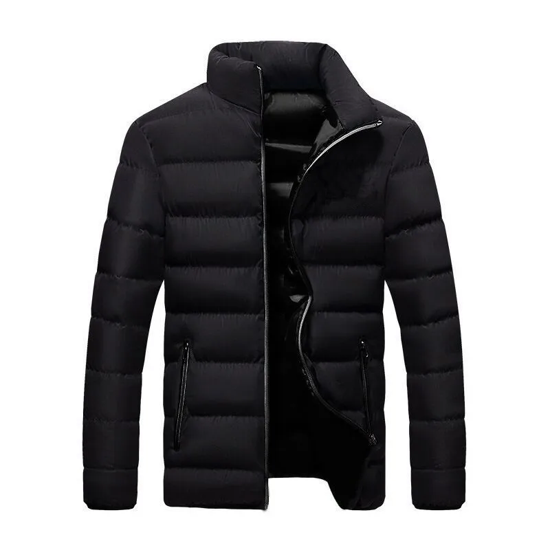 Мужская зимняя куртка с воротником-стойкой, однотонная теплая Повсе...