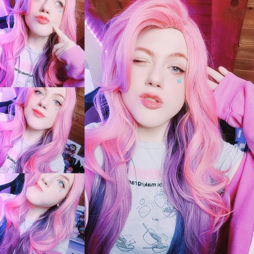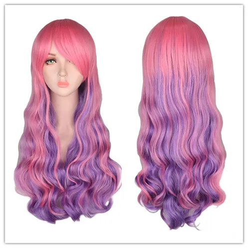 Игра Серафин розовый фиолетовый градиент волнистый длинный парик для косплея с челкой термостойкие синтетические волосы Хэллоуин вечерние парик + бесплатная крышка