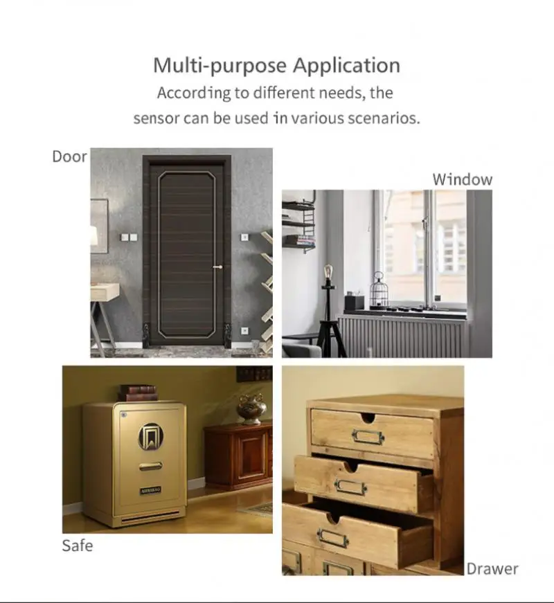 Никаких сложных инструментов установки не требуется. Датчик может быть установлен с двухсторонней лентой или винтами (в комплекте) всего за несколько шагов, И загрузите приложение «tuya» или «Smart Life» из GooglePlay или app Store, чтобы проверить состояние вашей двери/окна.