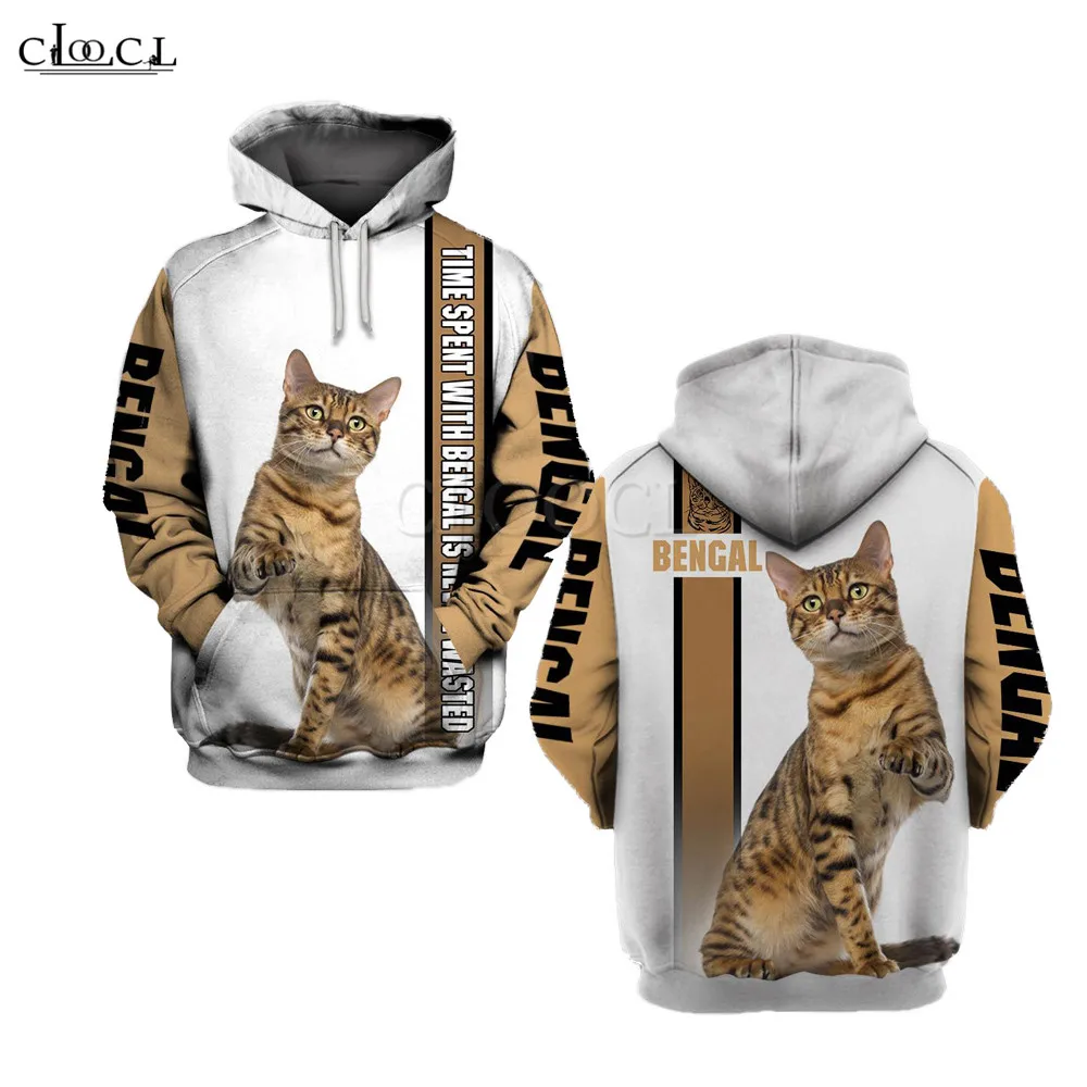 Толстовка CLOOCL с изображением животных, 3D графика, время, потраченное с котом, толстовки с капюшоном, кошки, мейн-енот, свитшоты, модная забавная одежда