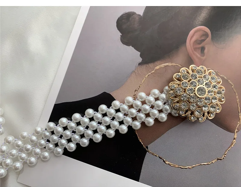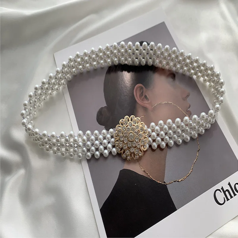 Модный Эластичный разнообразный стиль стразы пряжка на талию цепочка аксессуары женский пояс жемчужный эластичный официальный женский пояс