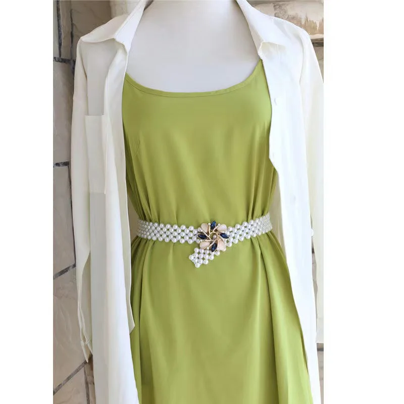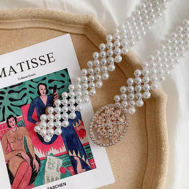 Элегантный женский пояс с жемчугом, эластичный ремень с цветочной п...