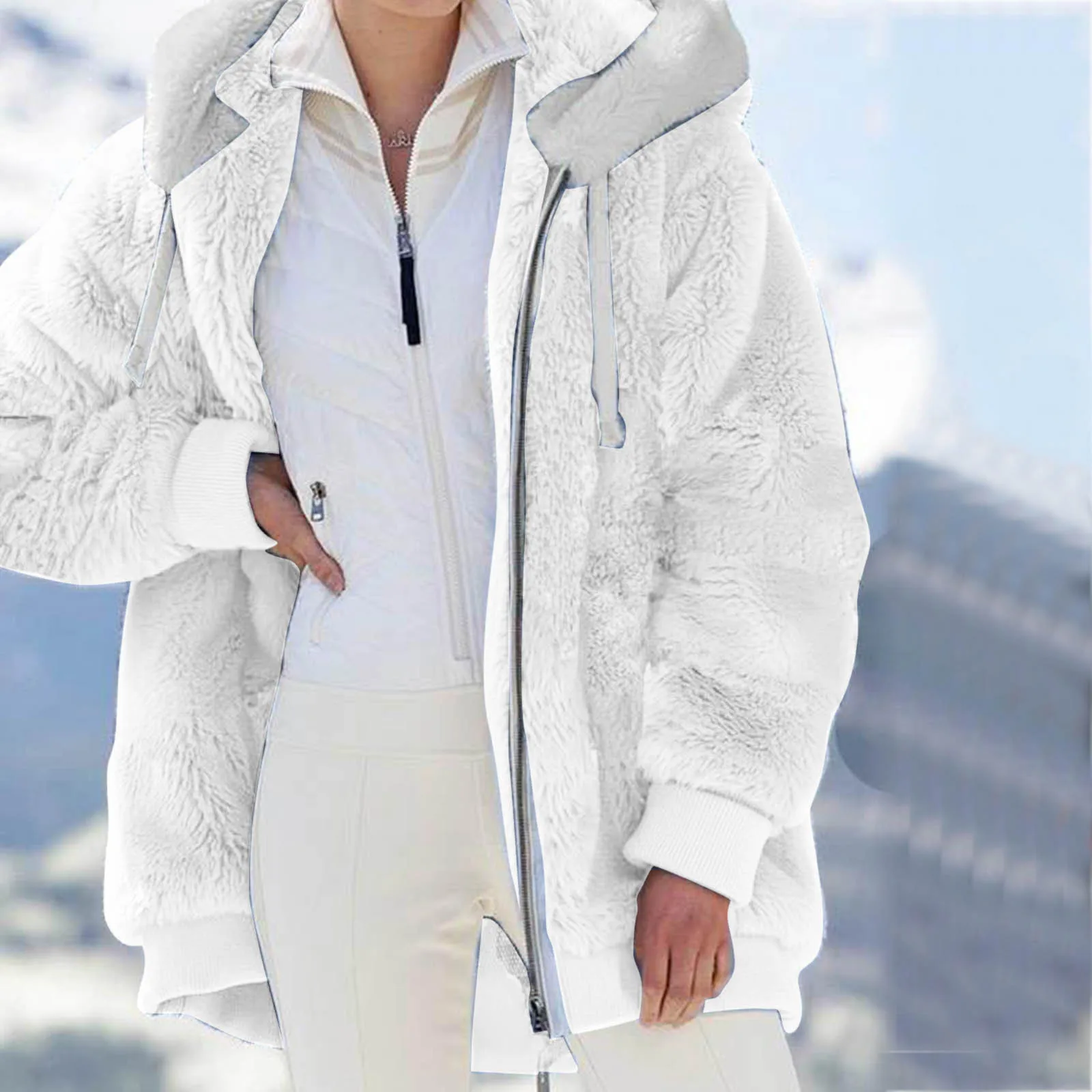 Женское осенне-зимнее флисовое пальто на молнии, плюшевое пальто, куртки на молнии с капюшоном, Повседневная теплая женская верхняя одежда из искусственного меха