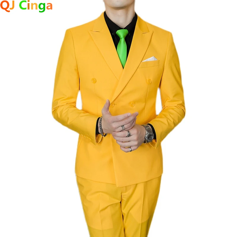 Мужской повседневный эксклюзивный деловой костюм, двубортный пиджак...