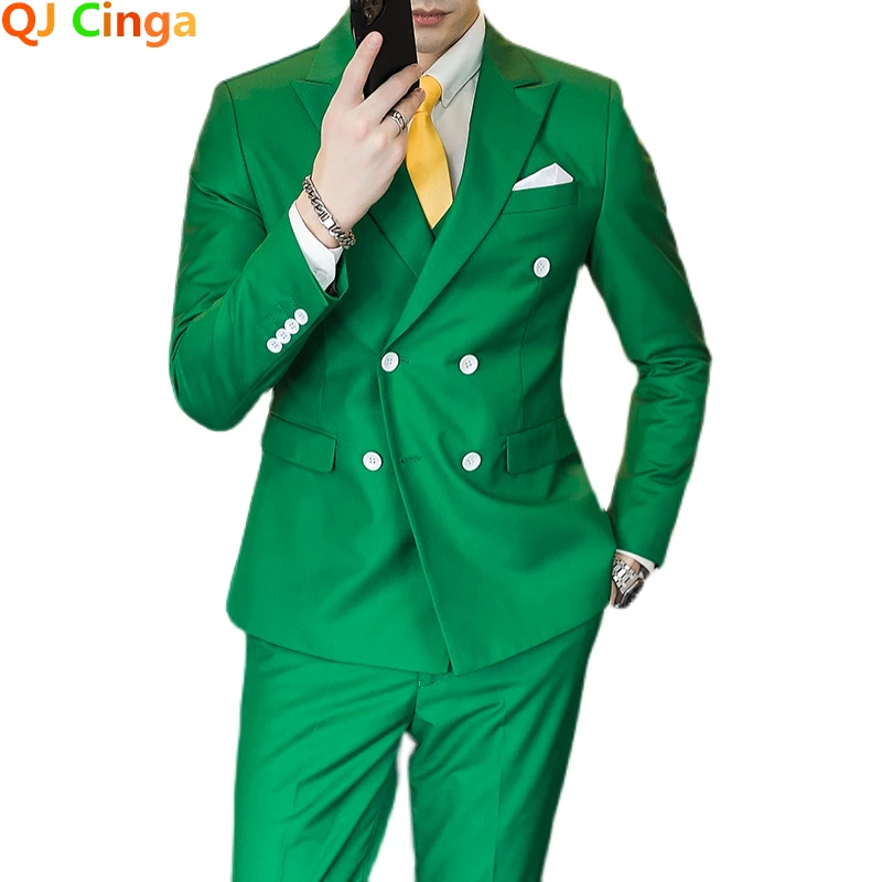 Мужской двубортный костюм из трех предметов, темно-синий Официальный жакет и брюки, жилет, новинка, Terno Masculino от QJ CINGA S-5XL 6XL