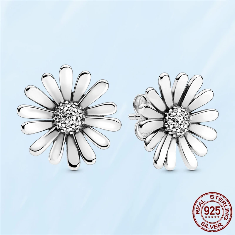 Серьги-подвески женские из серебра 925 пробы с улыбающимися маргаритками