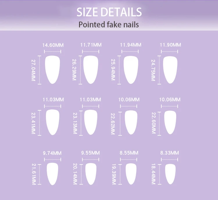 2. Очистите ногти, затем выберите подходящий размер ногтей, наклейте поддельные ногти на гвоздь и удерживайте его в течение 20 секунд.