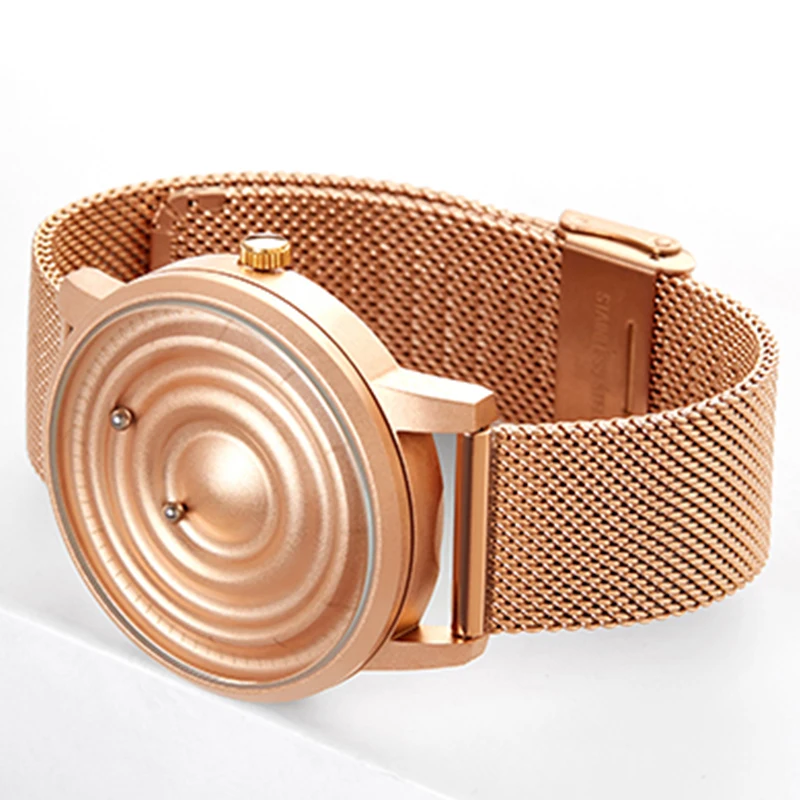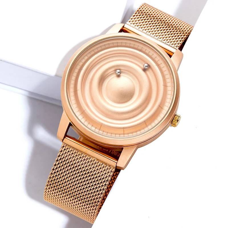 Часы наручные кварцевые из нержавеющей стали, люксовые минималистичные с магнитной застежкой-указкой, с циферблатом под розовое золото, для мужчин и женщин