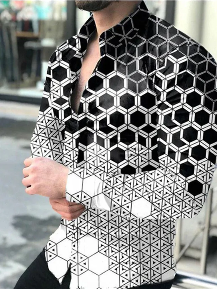 Мужская рубашка с длинным рукавом, синяя Повседневная рубашка с принтом молнии, отложным воротником и пуговицами, одежда для улицы, осень 2021