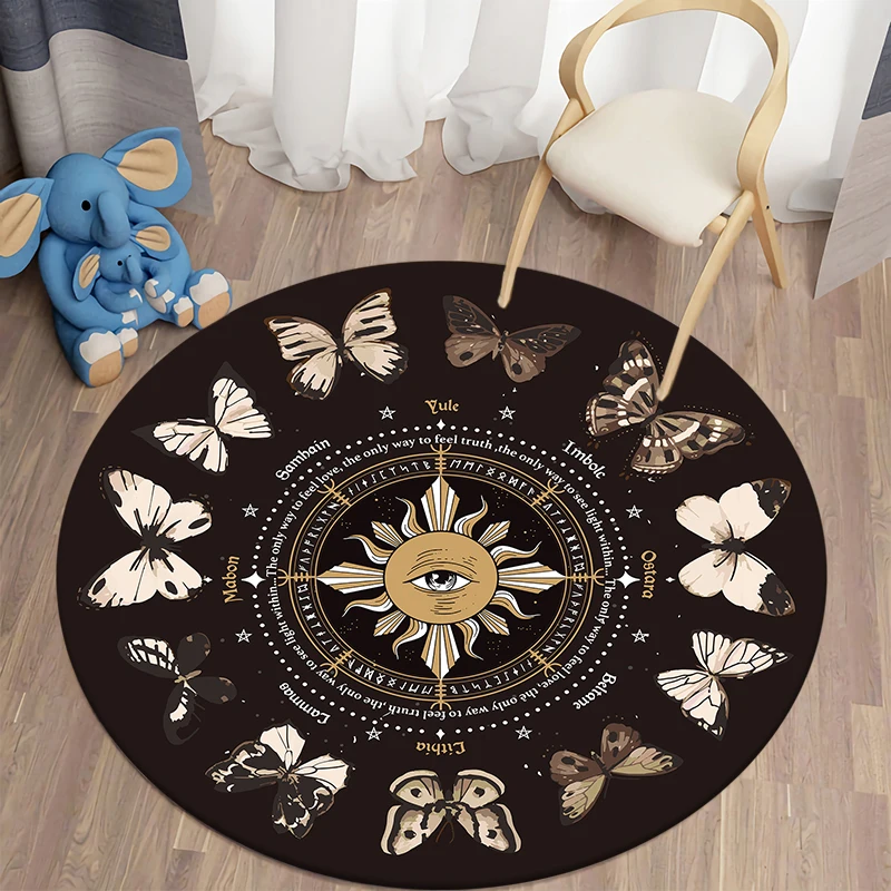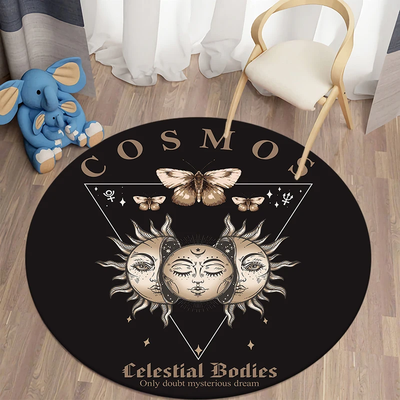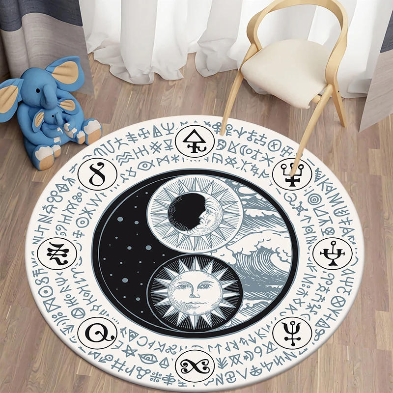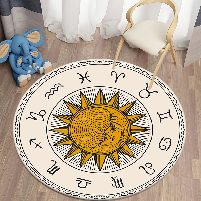 Круглый ковер с принтом загадок для гостиной, коврики в стиле ретро, напольные ковровые покрытия для детской спальни, домашний декор, мягкий коврик, противоскользящий дверной коврик