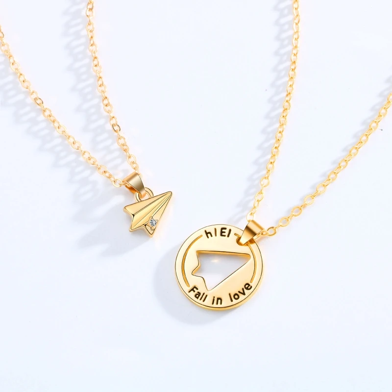 28TF 2 шт/набор бумажные парные ожерелья изысканный геометрический треугольный кулон в форме самолета цепочка для ключицы шикарный подарок
