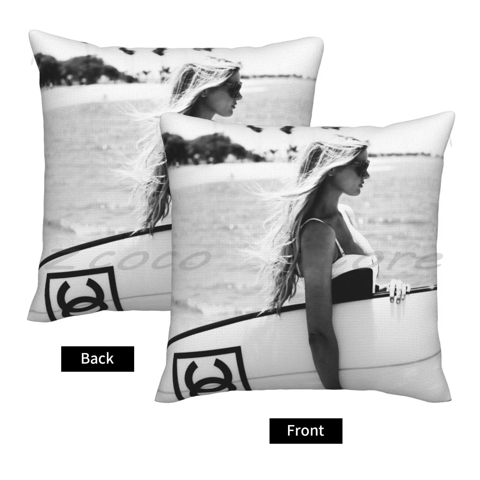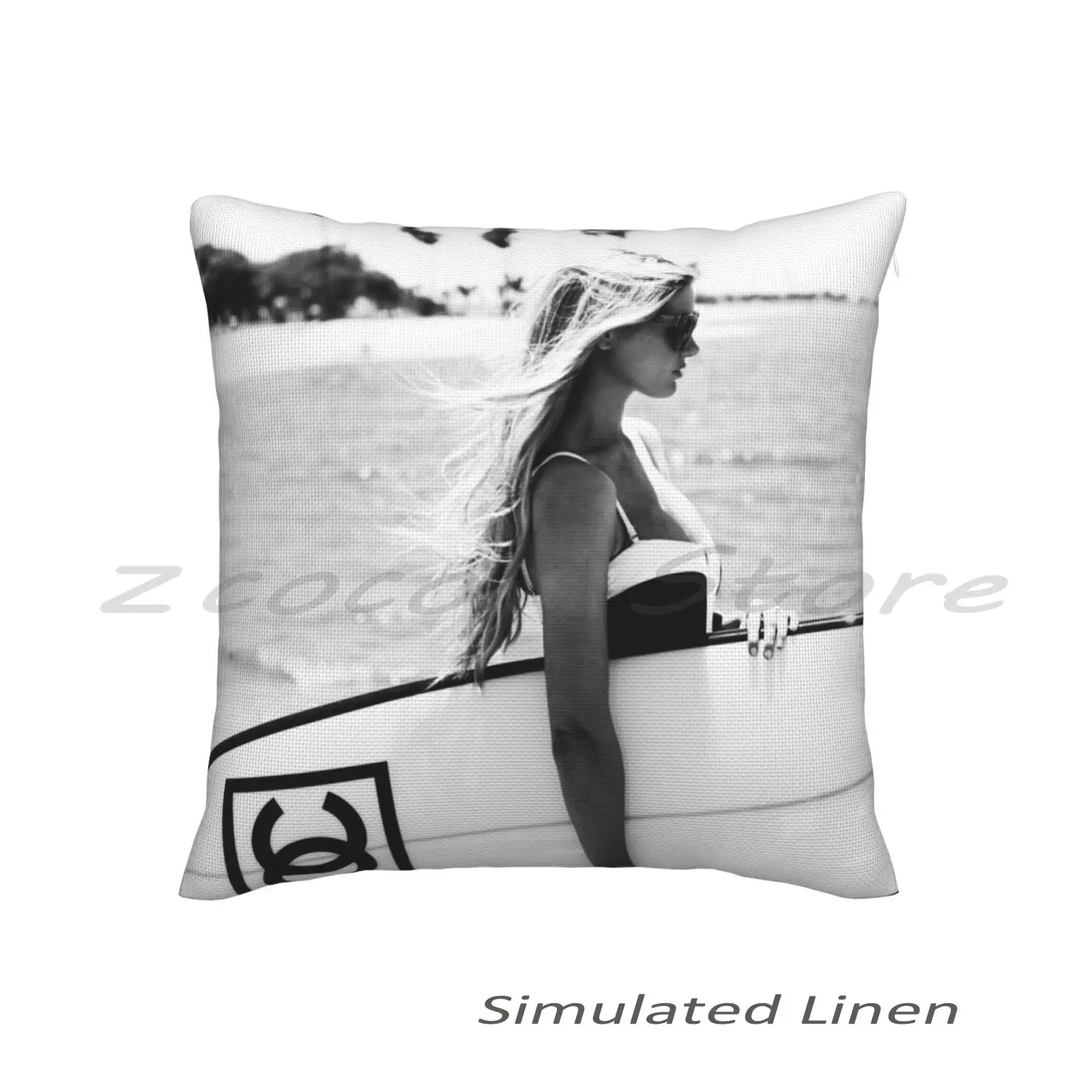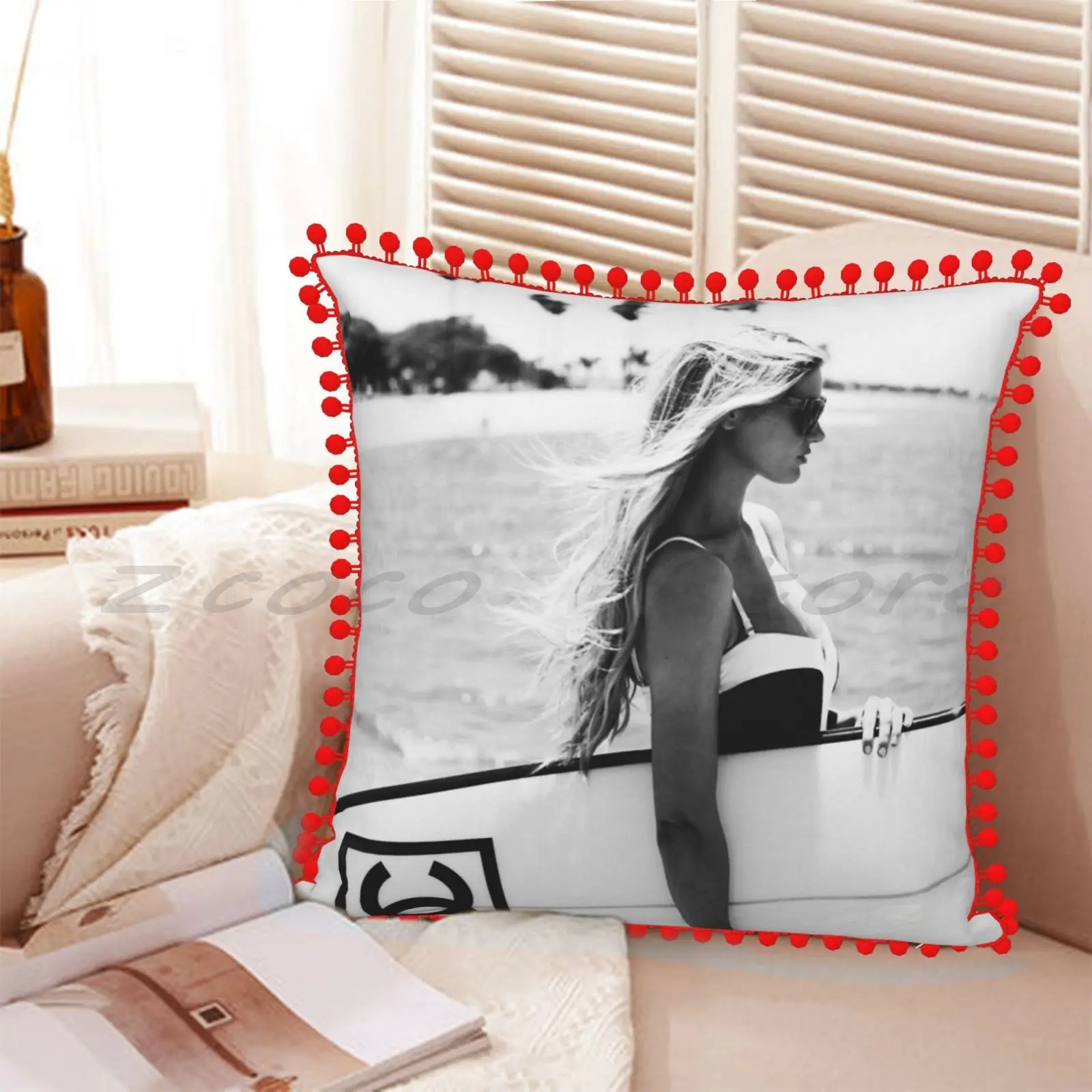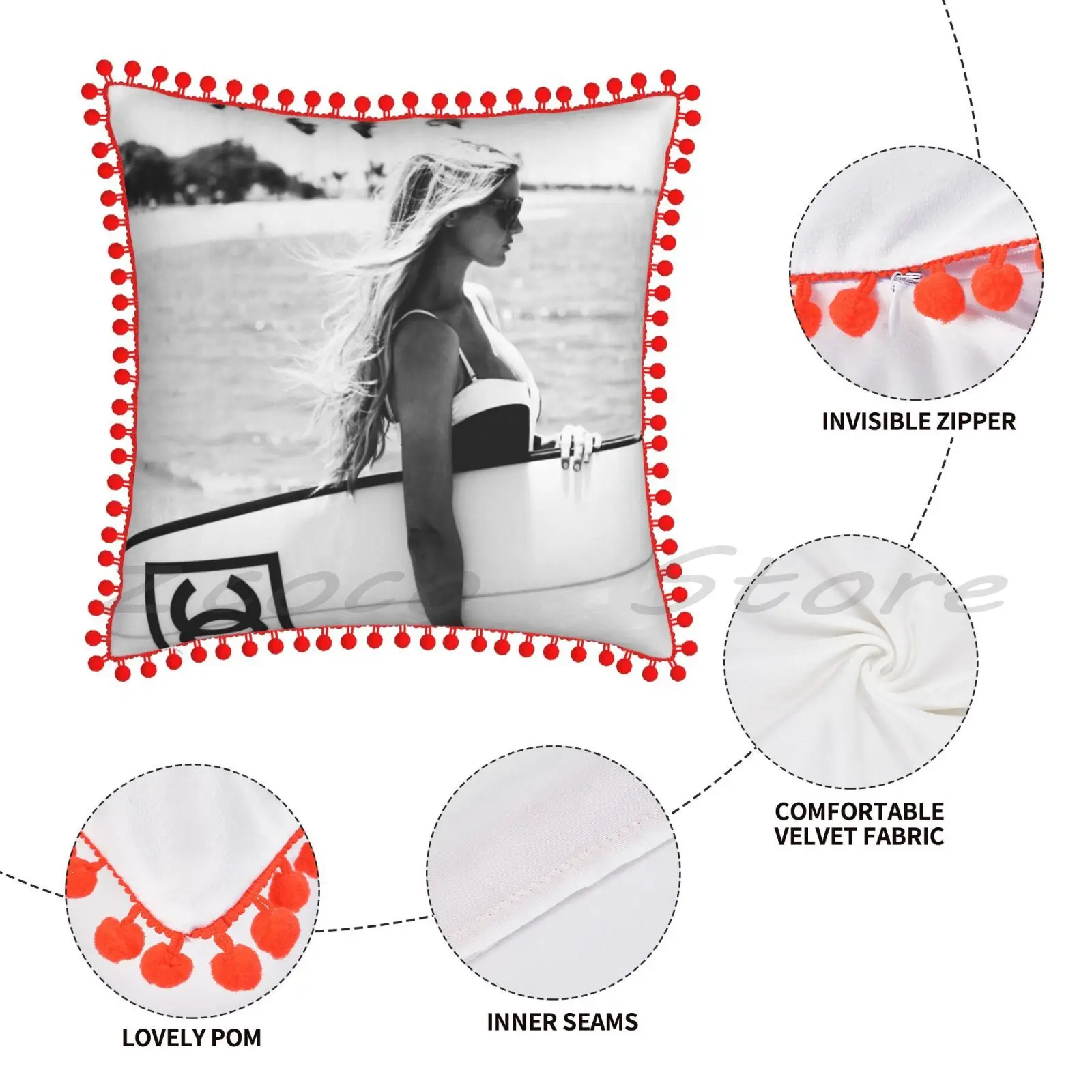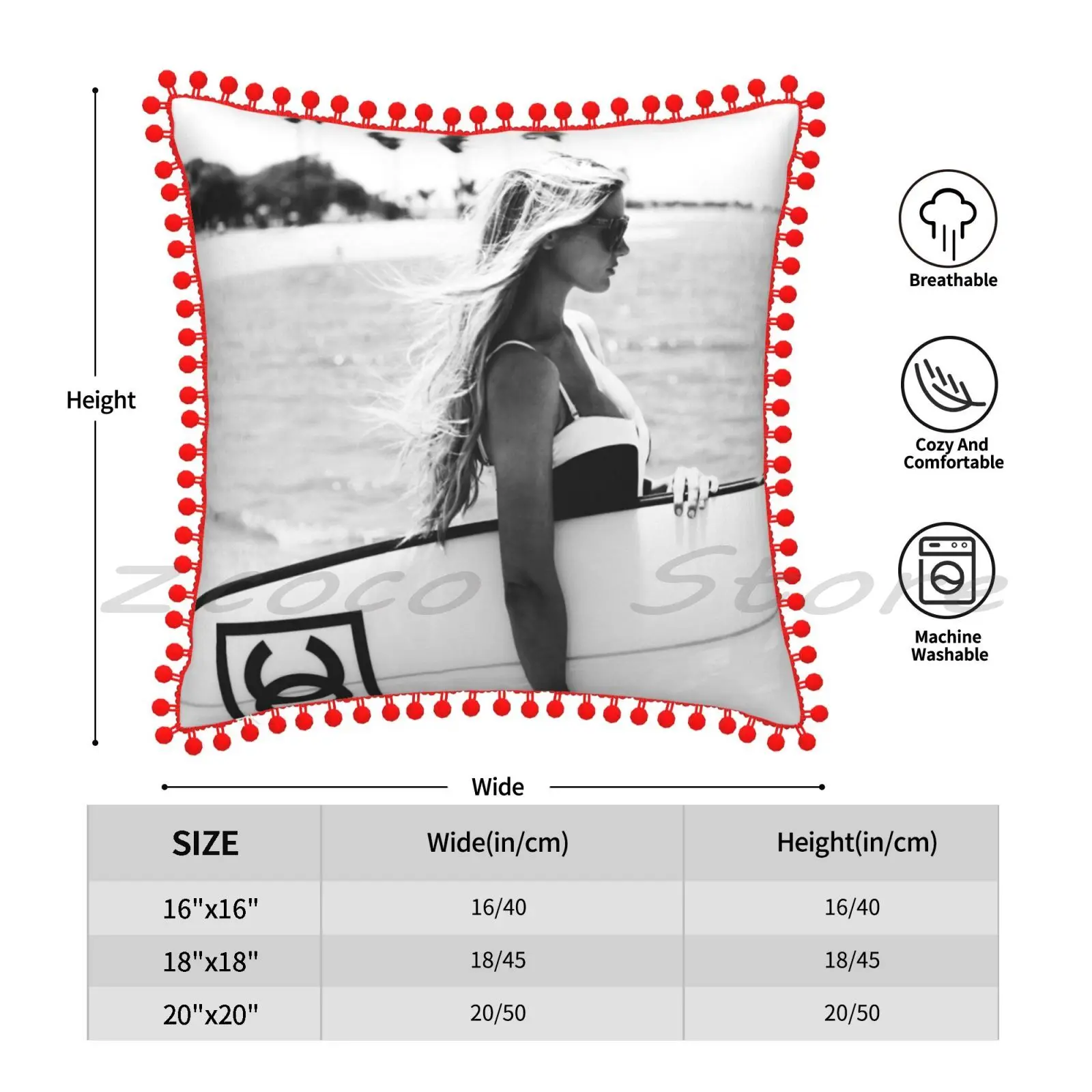 Модная наволочка для серфинга для девушки, наволочка для пляжной стены с надписью, хлопковая льняная наволочка с плюшевым помпоном для серфинга