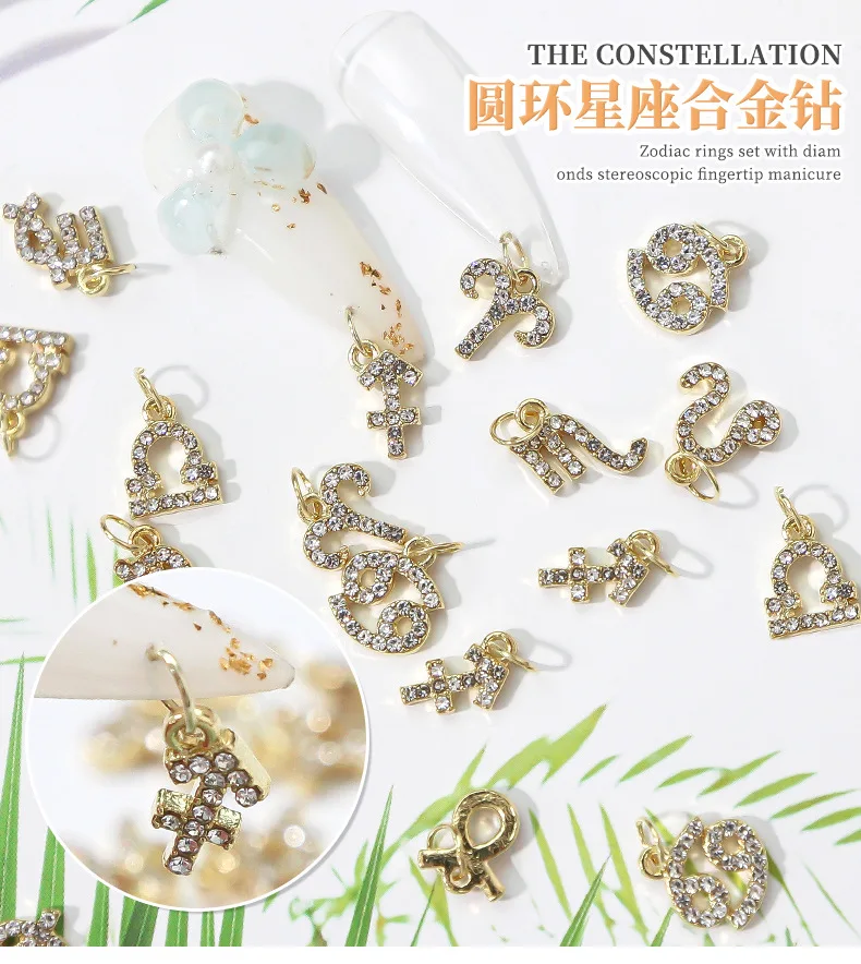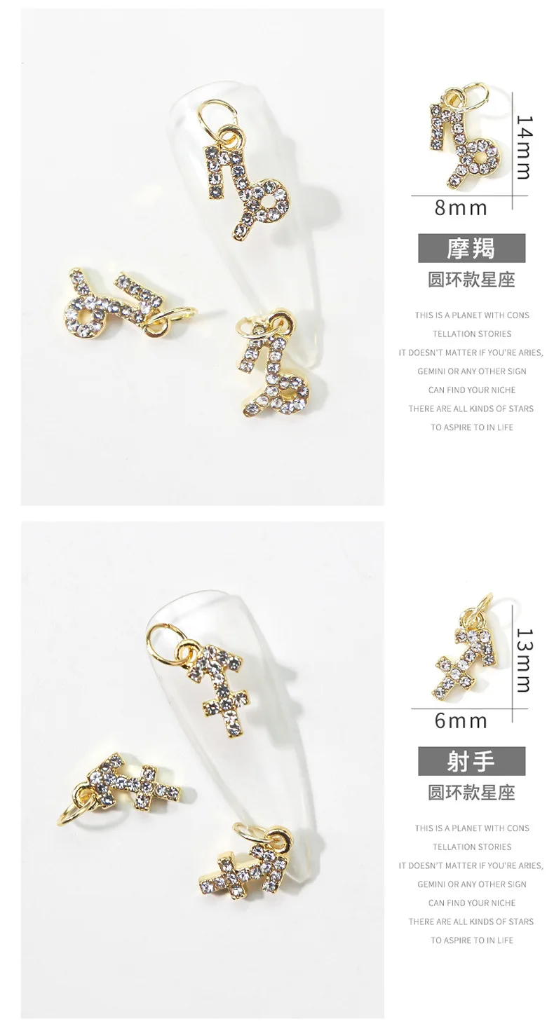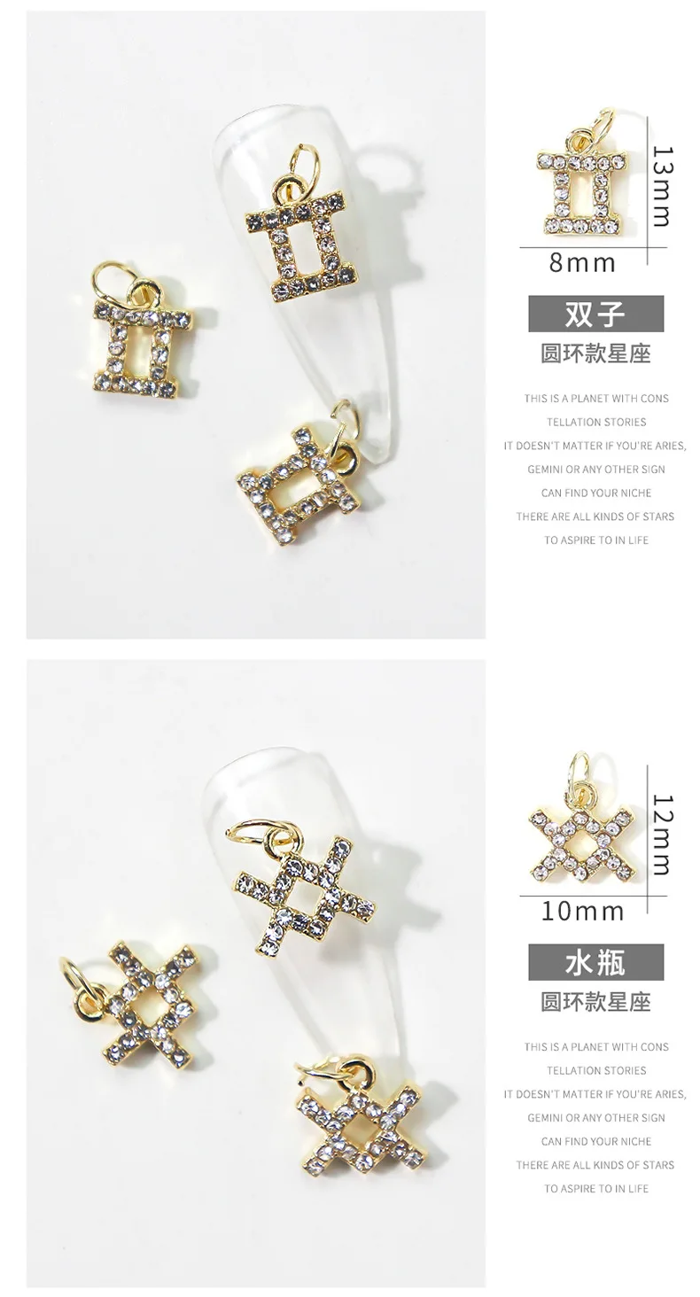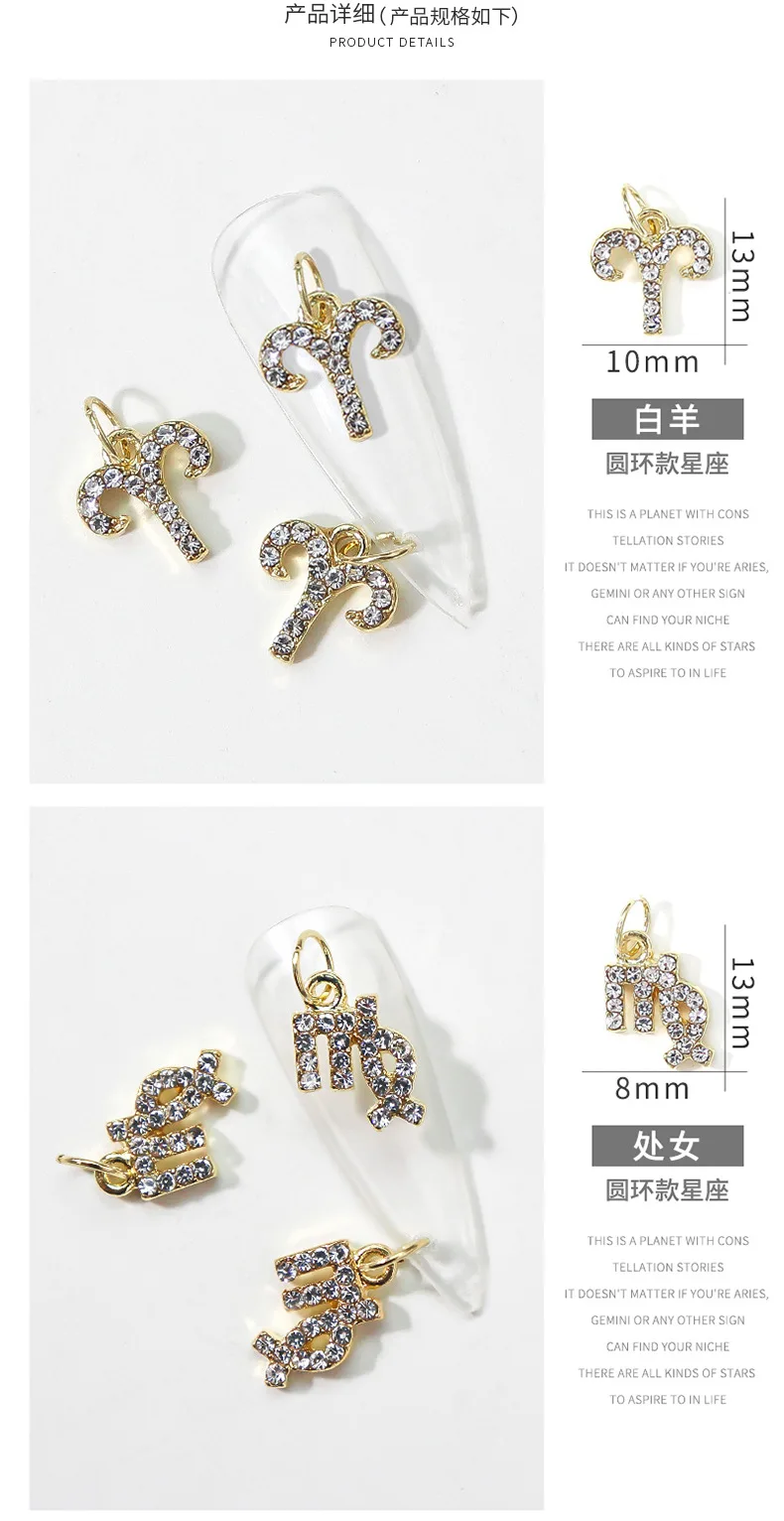 Набор для ногтевого дизайна:Наши 3d кулоны для ногтей маленькие и изысканные с сверкающими стразами, особенно ослепительно под светом. Шармы для ногтей зодиака очень подходят для украшения ногтей, которые сделают ваши ногти блестящими и уникальными