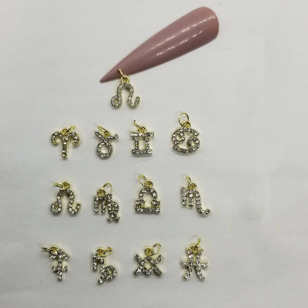 10 шт., пирсинг для ногтей, Зодиак, подвески, металл, 3d дизайн ногтей, созвездия, подвески с Стразы, блестящие украшения для ногтей