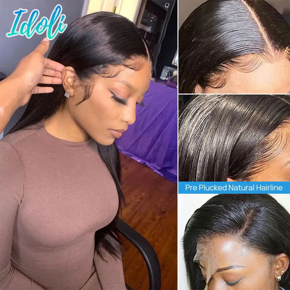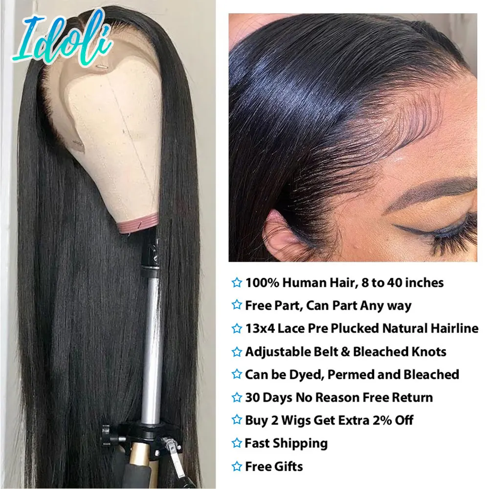 Парик Idoli с прямыми натуральными волосами, аксессуары для волос, 13x4, 16-34 дюйма