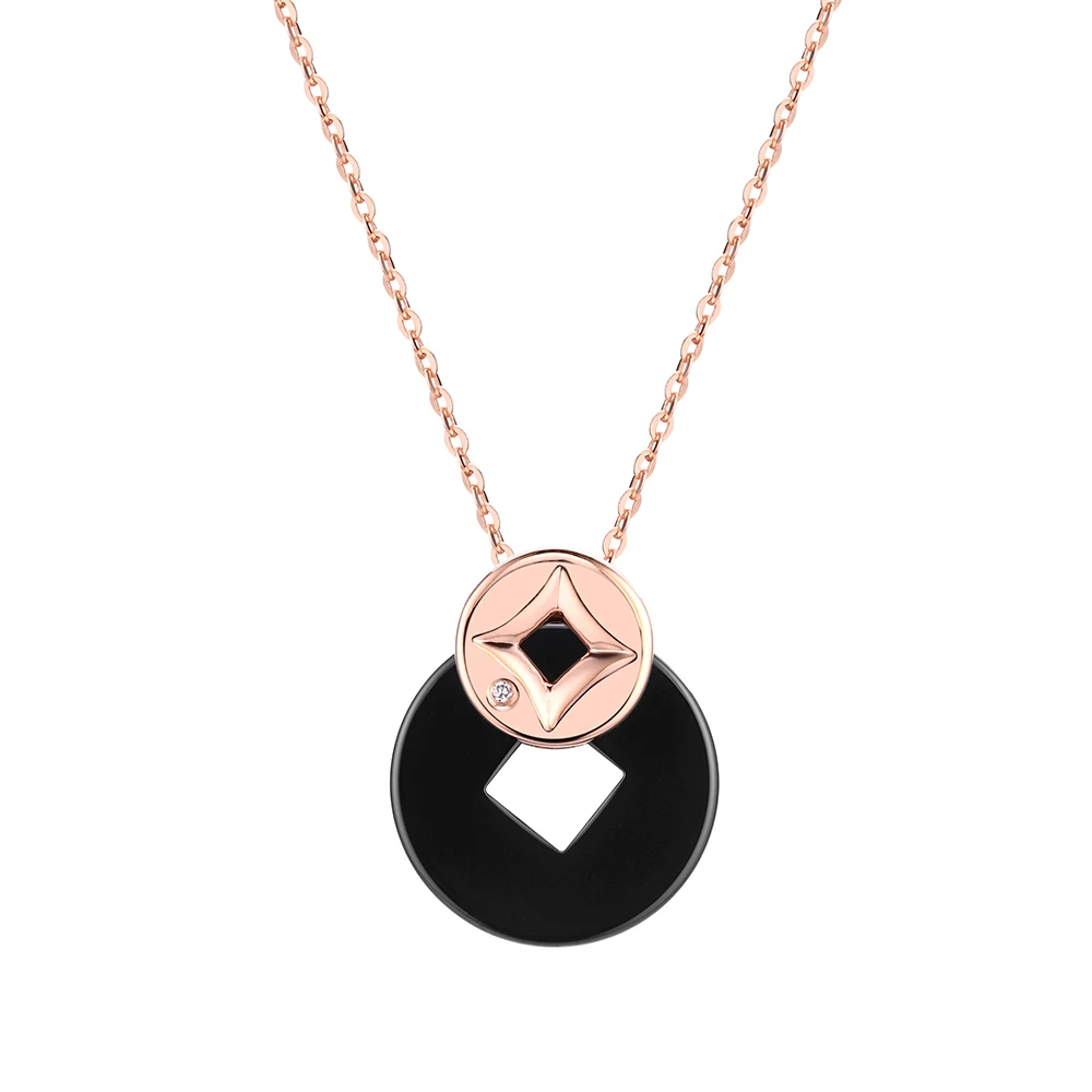 Ожерелье женское эмалированное под розовое золото вечерние кулоном ...