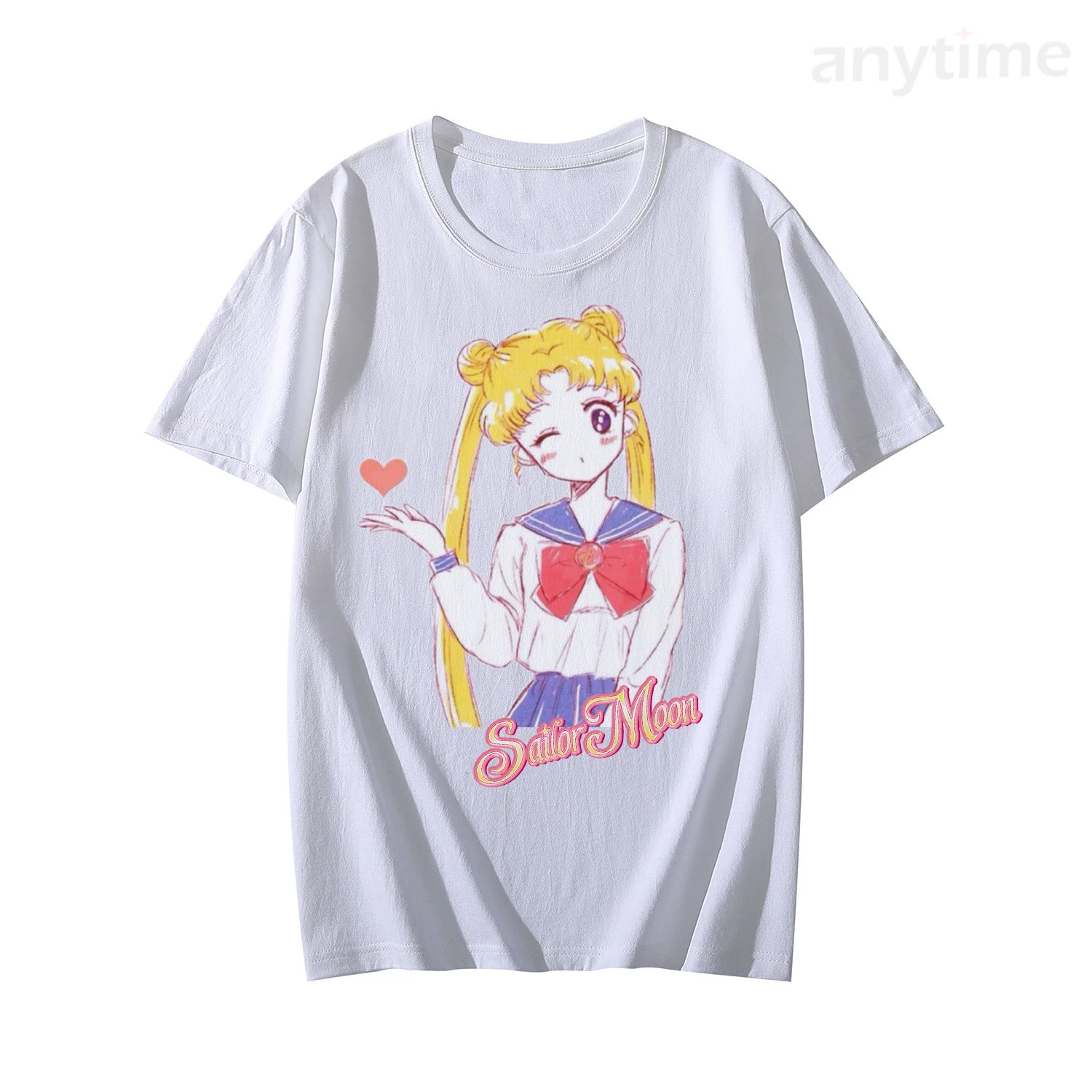 Футболка с коротким рукавом и круглым вырезом, с принтом Сейлор Мун