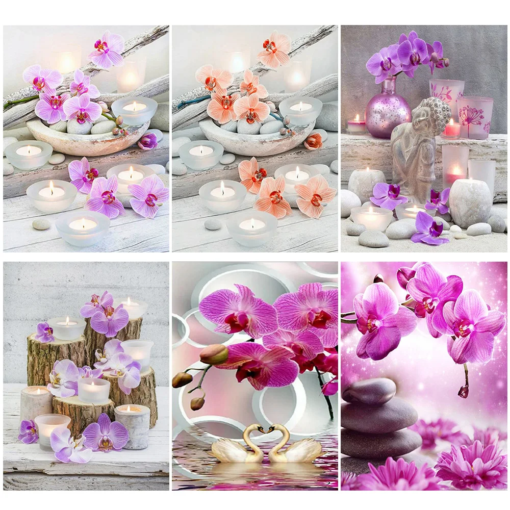 Алмазная живопись 5D сделай сам, картина из квадратныхкруглых страз, Орхидея, 3D Вышивка крестом, Декор для дома