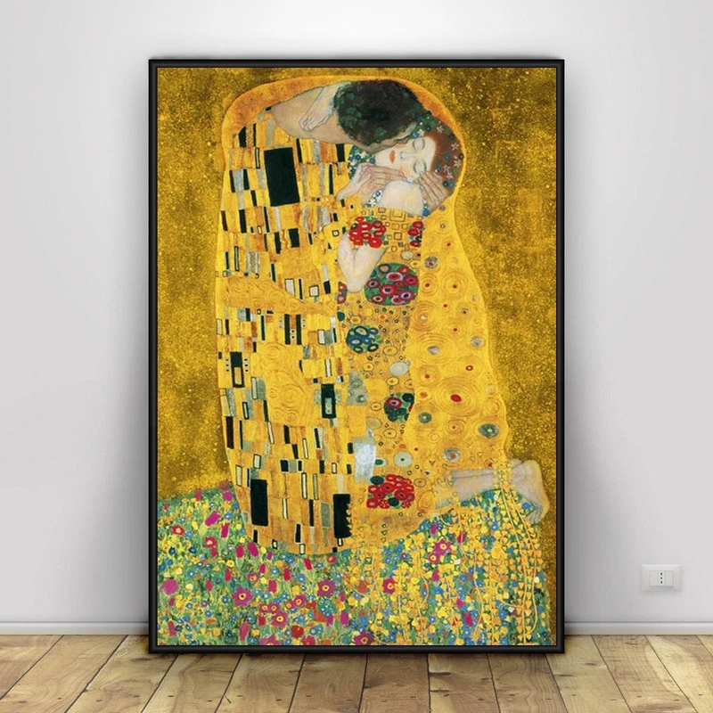Абстрактный классический художник Густав Климт поцелуй Картина маслом напечатанная на холсте Современная печать плакат Настенные картинки для декора гостиной