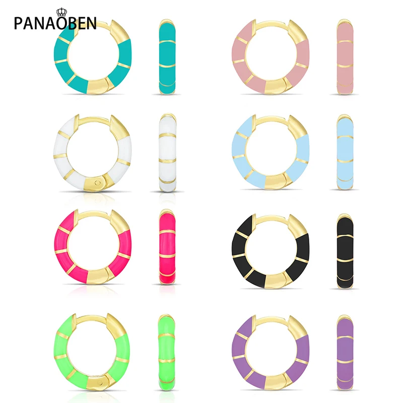 Женские серьги-кольца с эмалью, фиолетового и зеленого цвета