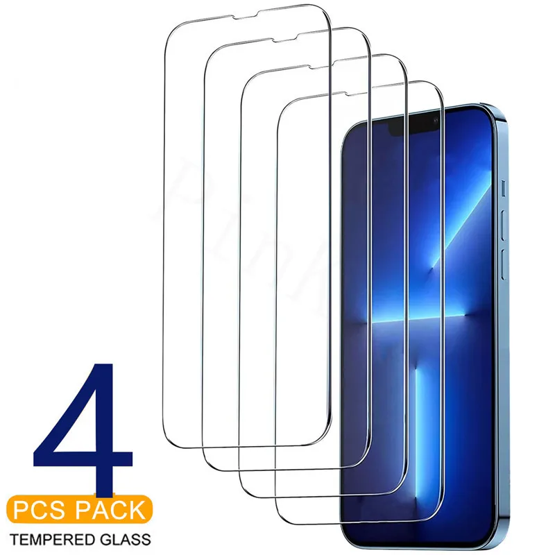 Закаленное защитное стекло с полным покрытием для iPhone, 4 шт., Защита экрана для iPhone 11, 12, 13 Pro, XS, Max, XR, X, 7, 8, 6, 6s Plus, зеркальное стекло