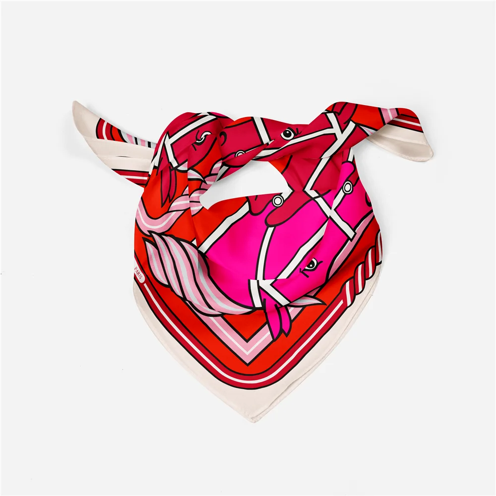 Женский шелковый шарф POBING Twill, квадратный шарф с листьями и головой лошади, роскошные банданы, маленький хиджаб, Женский Галстук, повязка на голову 53x53CM