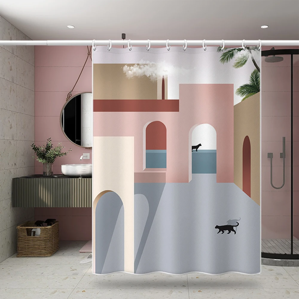 Скандинавская занавеска для душа с абстрактным изображением ветра, водонепроницаемая занавеска для ванной из полиэстера, занавески Morandi с цветными блоками для декора ванной комнаты
